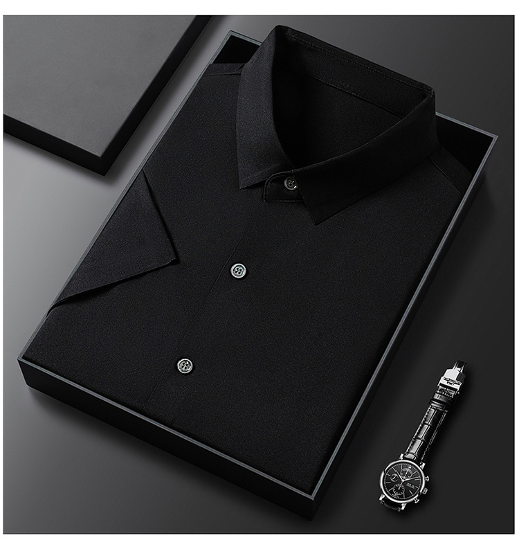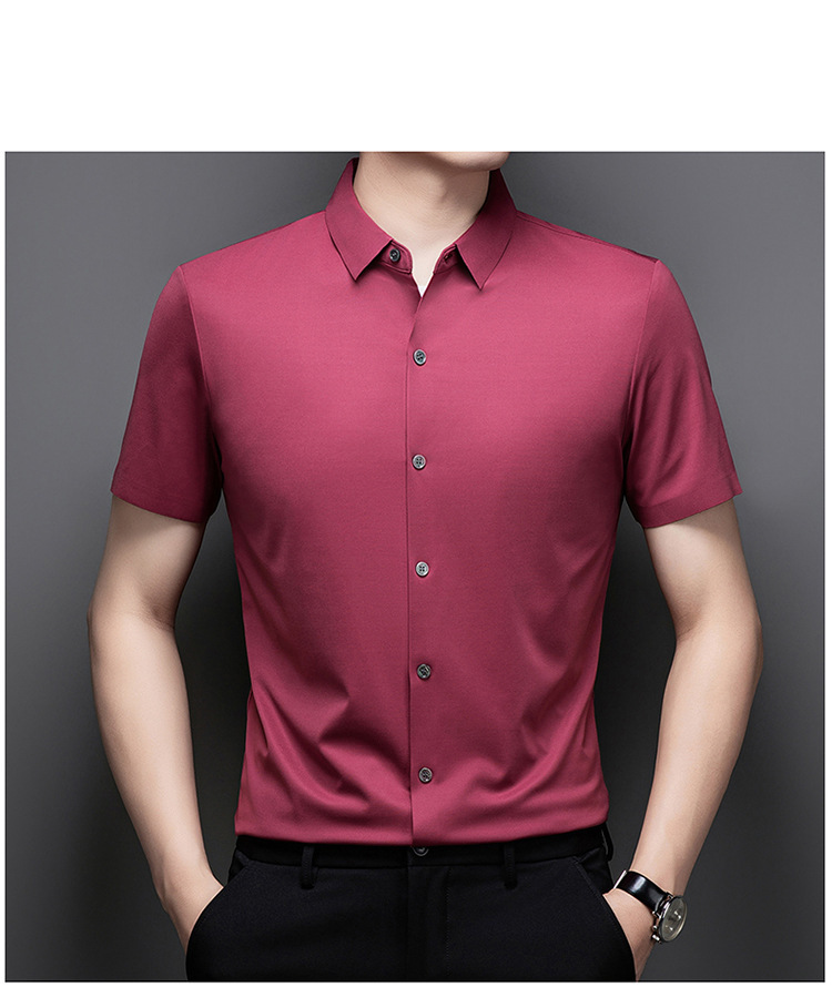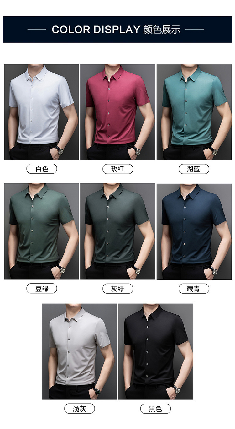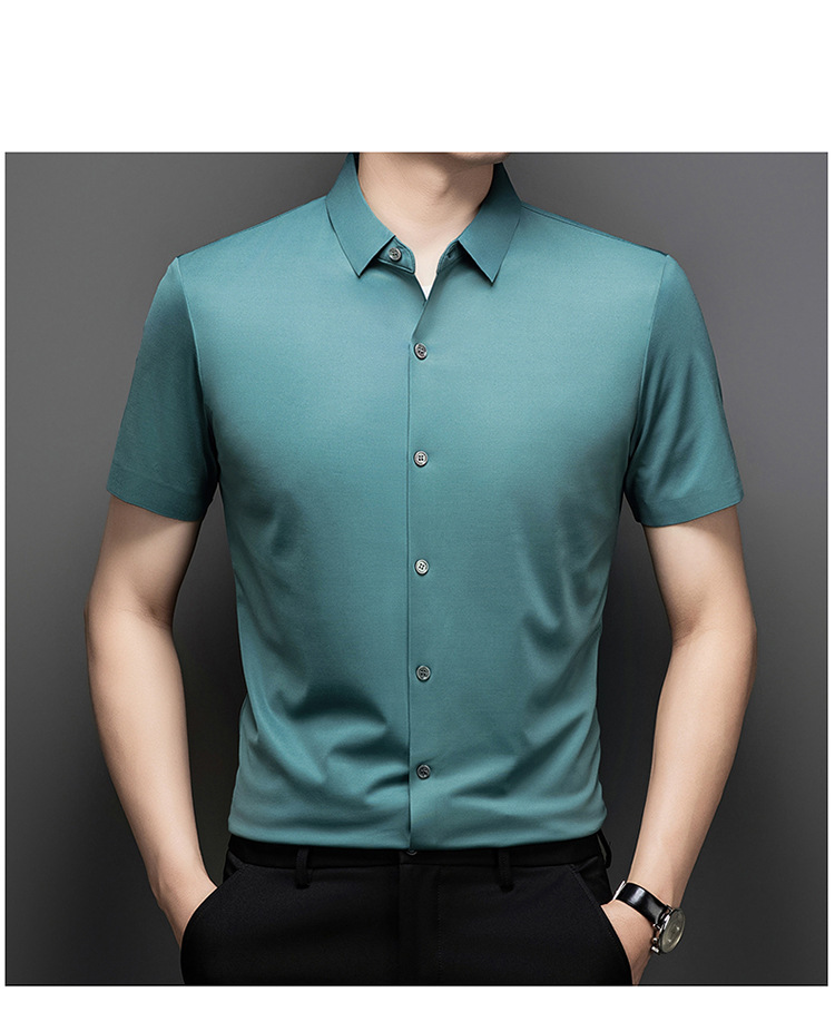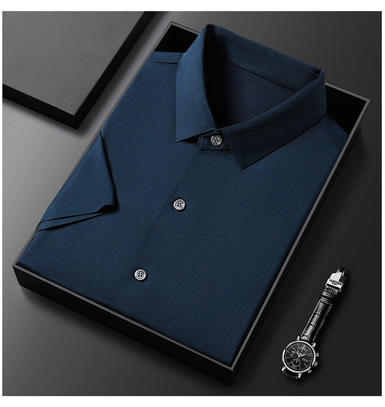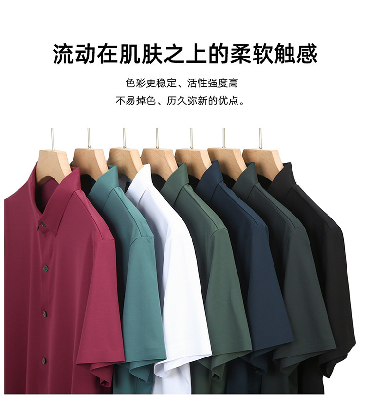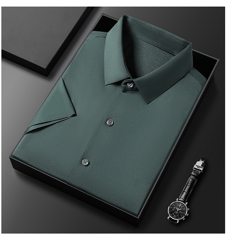 夏季新款男士无痕短袖衬衫中青年商务休闲舒适感含桑蚕丝纯色衬衣