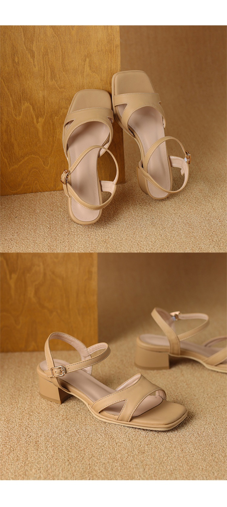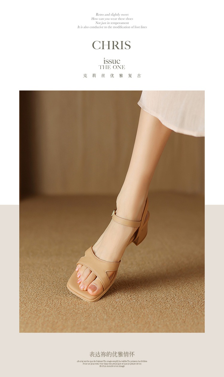 31-43 대형 신발 사각형 발가락 오픈 발가락 두꺼운 뒤꿈치 샌들 여성 여름 새로운 한 단어 버클 스트랩 중간 굽 신발 대외 무역 국경 신발