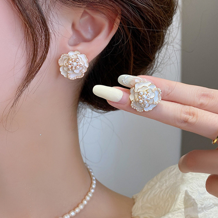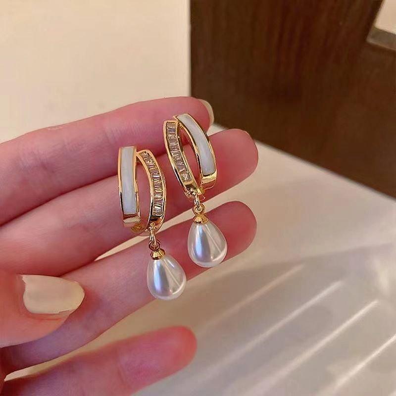 • 지르콘 눈송이 진주 스터드 귀걸이