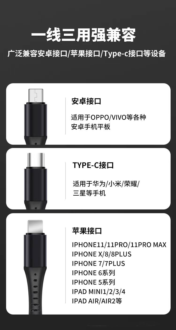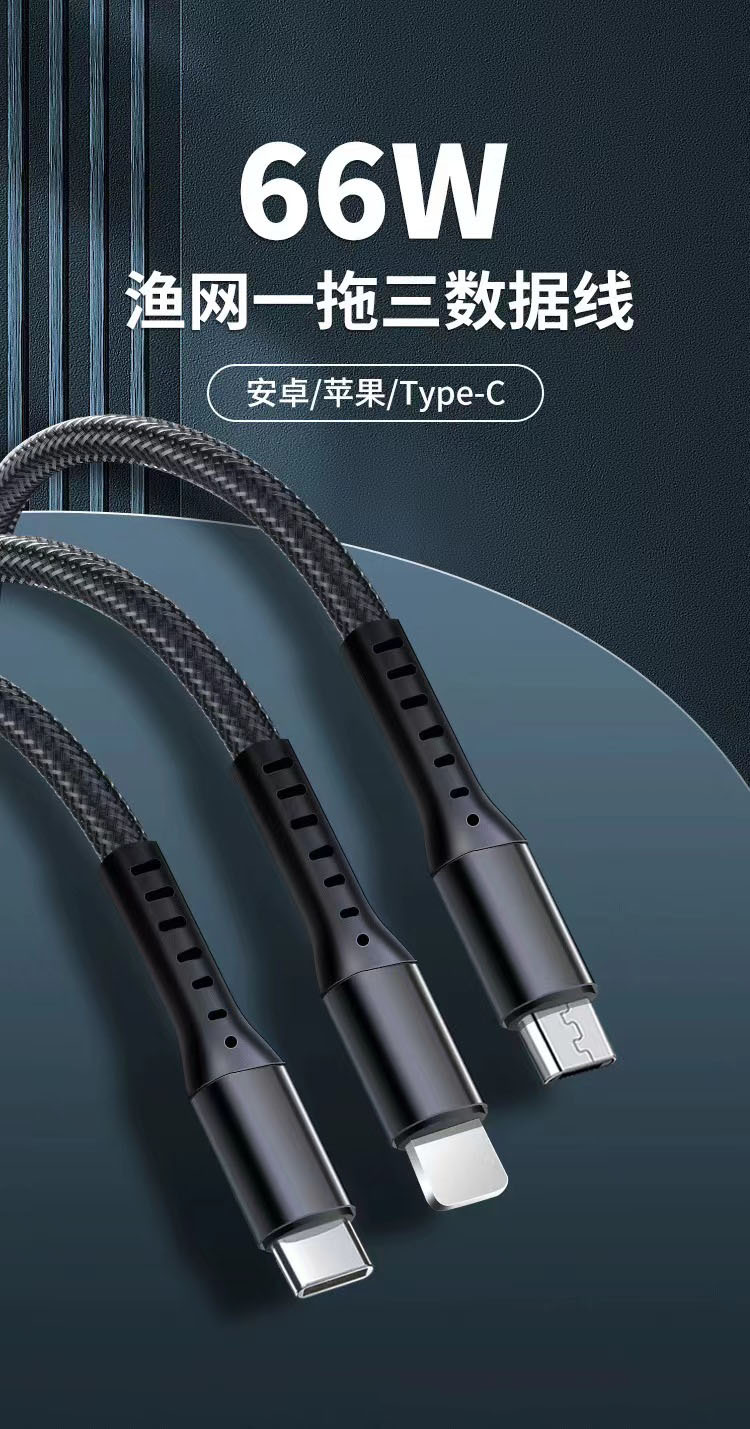 66W 3 대 1 데이터 라인 타입 c 범용 차량 다기능 6A 초고속 충전 라인 1 대 3 충전 라인스토어 가기