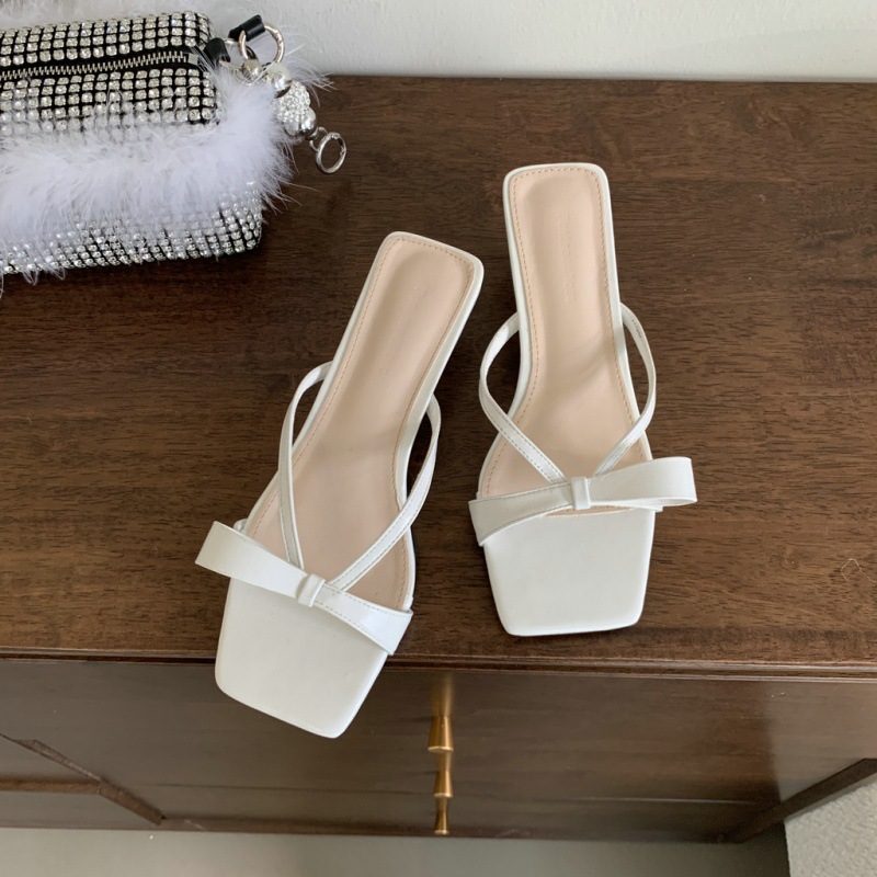 2024 여름 새로운 하이힐 샌들 페어리 스타일 오픈 발가락 슬라이딩 슬리퍼 미드 힐 샌들