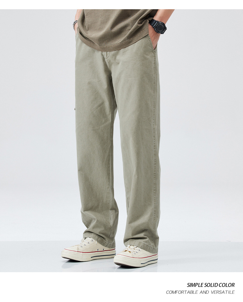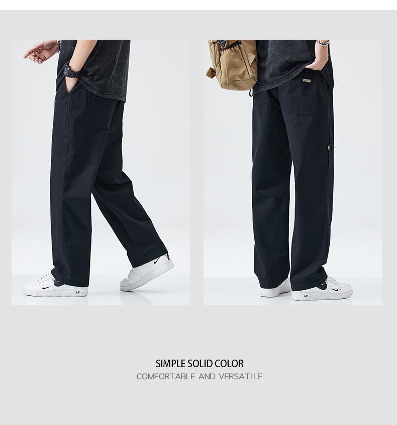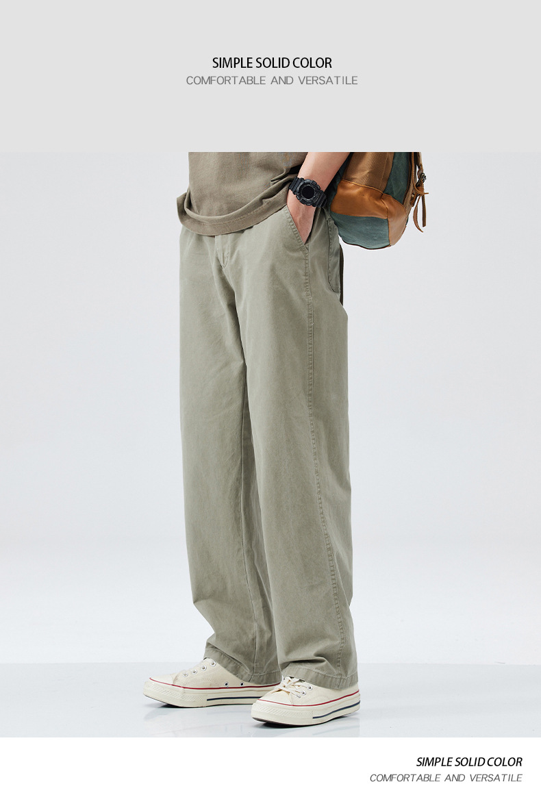 일본 퓨어 코튼 스트레이트 캐주얼 바지 남자 여름 트렌디 브랜드 올 매치 와이드 레그 오버롤 바이브 루즈 스트레이트 바지