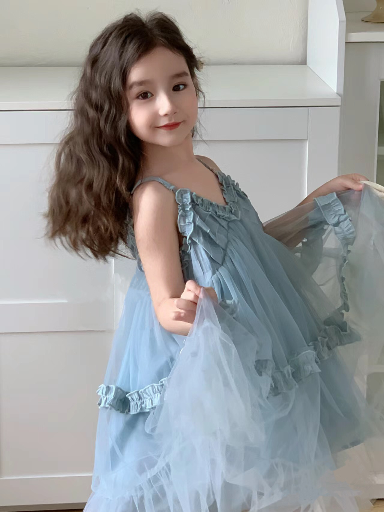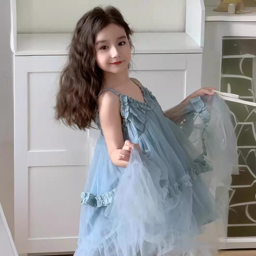 소녀 24 여름 원피스 신선한 푸른 메쉬 스커트 이완 스타일 휴일 스타일 슬립 스커트 공주스토어 가기