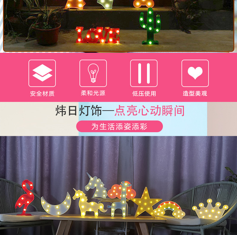플라밍고 선인장 모델링 빛 생일 축하 라이트 플레이트 발광 편지 빛 크리스마스 휴일 빛 분위기 빛스토어 가기