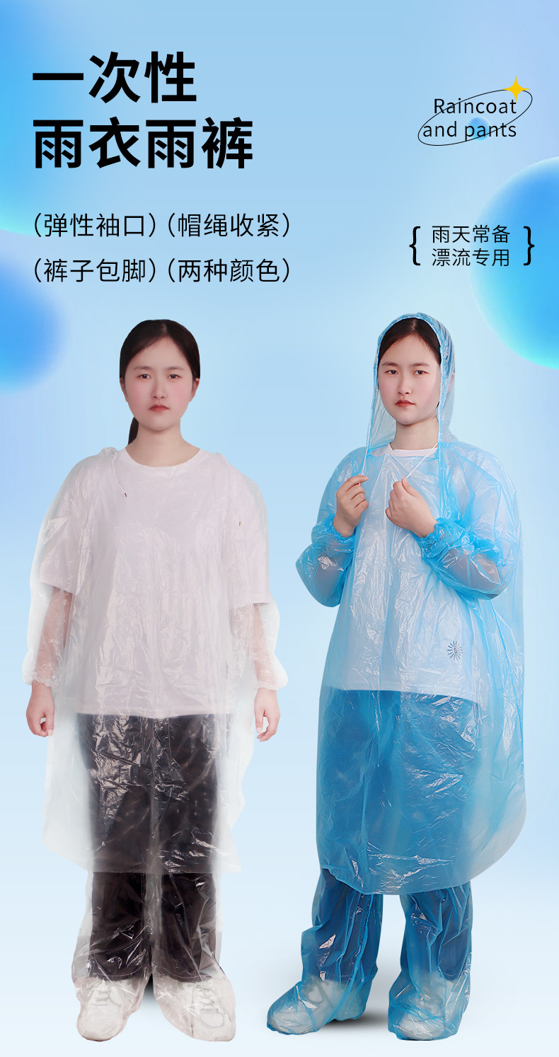 성인용 일회용 우비 세트 분리형 두꺼운 롱 스타일 폭우 방지 레인코트 래프팅 일체형 두꺼운 폭우 방지