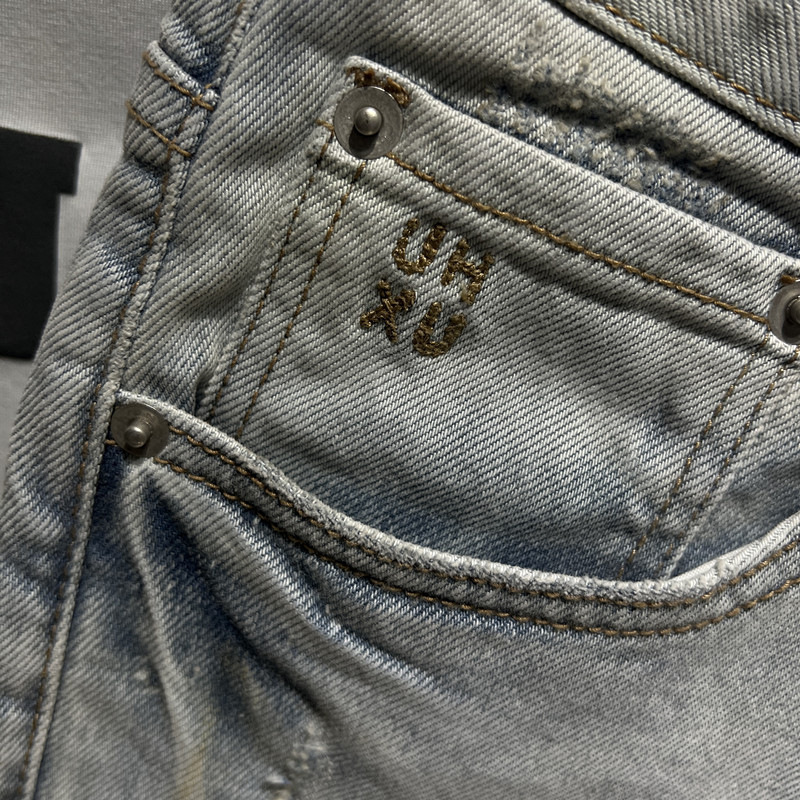 여름 라이트 컬러 아메리칸 스타일 트렌디 한 브랜드 5 점 데님 반바지 페인트 낙서 구멍 거지 슬림 핏 남성용 트렌디 한 5 점 중형 바지스토어 가기