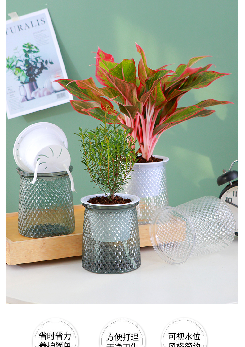녹색 꽃 냄비 자체 흡수 투명 갤런 수경 이중 레이어 세트 별과 게으른 사람들을위한 냄비 냄비 좋은 아침 냄비스토어 가기