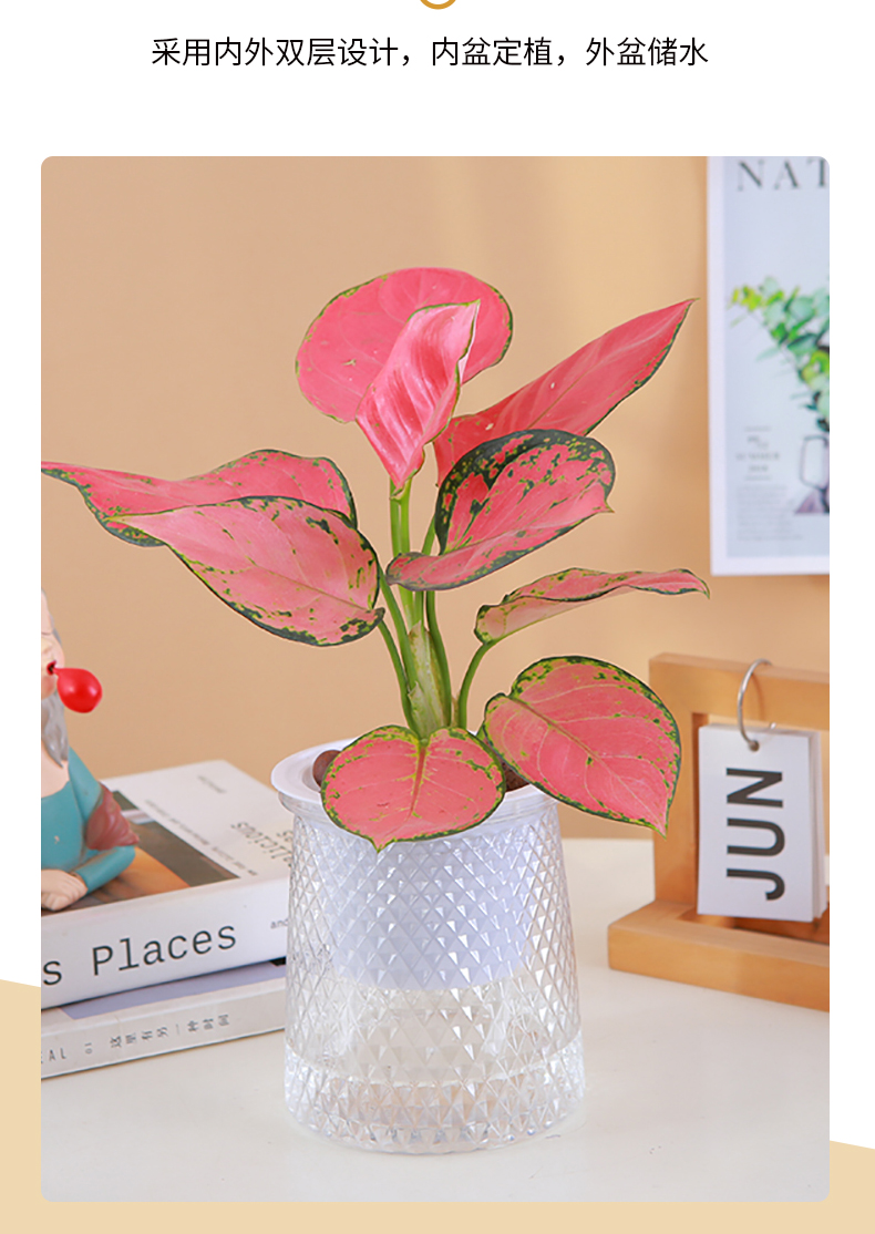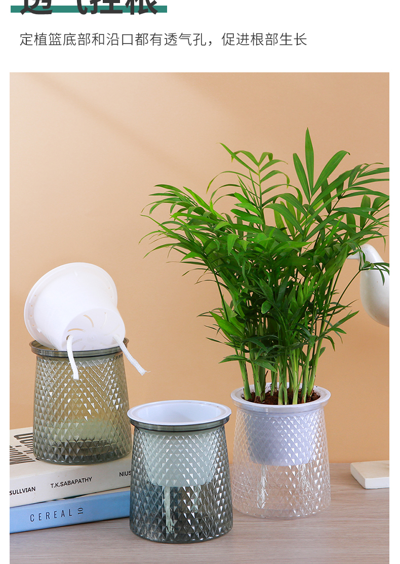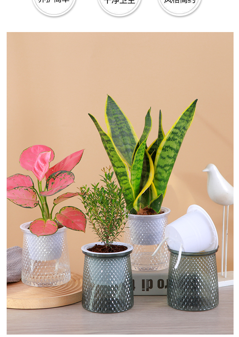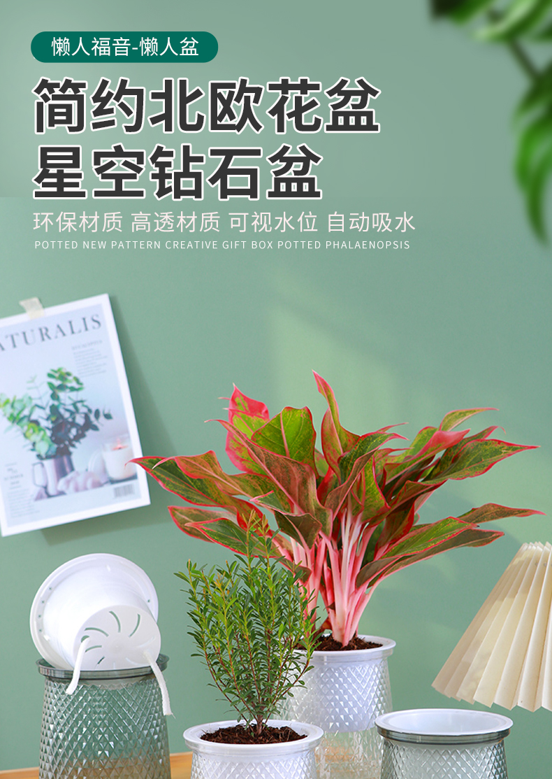 녹색 꽃 냄비 자체 흡수 투명 갤런 수경 이중 레이어 세트 별과 게으른 사람들을위한 냄비 냄비 좋은 아침 냄비