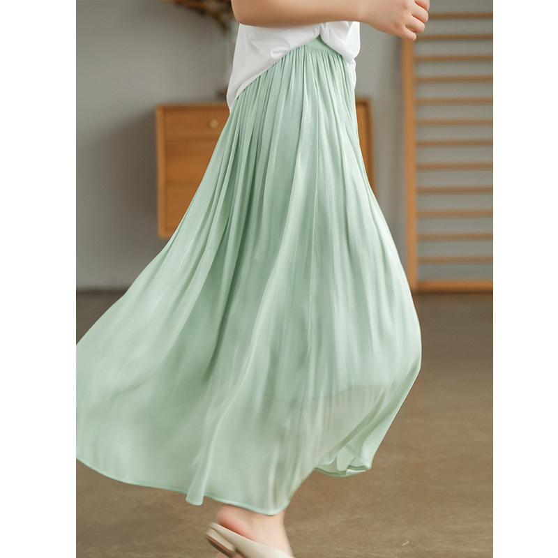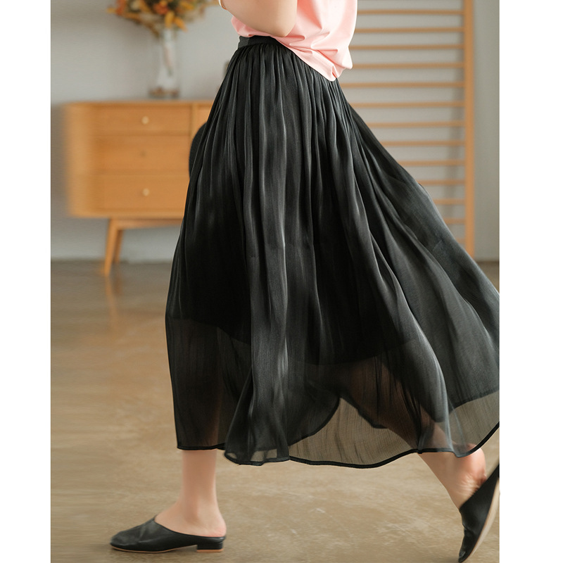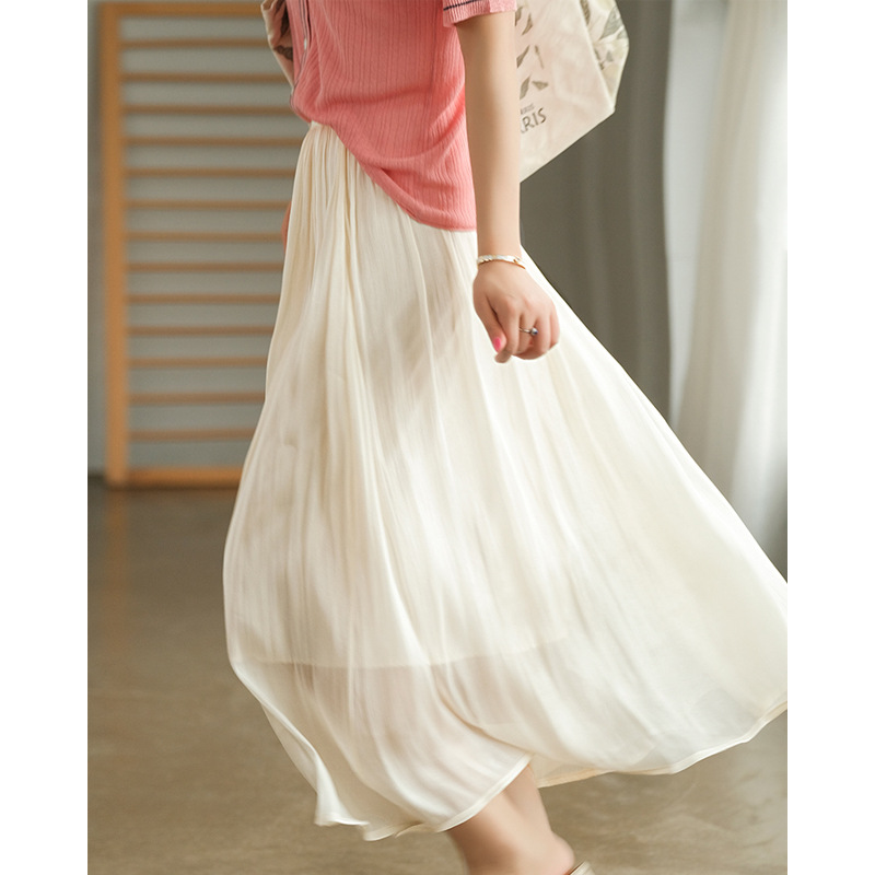 화이트 스트랜더 스커트 여성 여름 2024 높은 허리 요정 슬리밍 고관절 커버 우아한 메쉬 스커트 A 라인 스커트