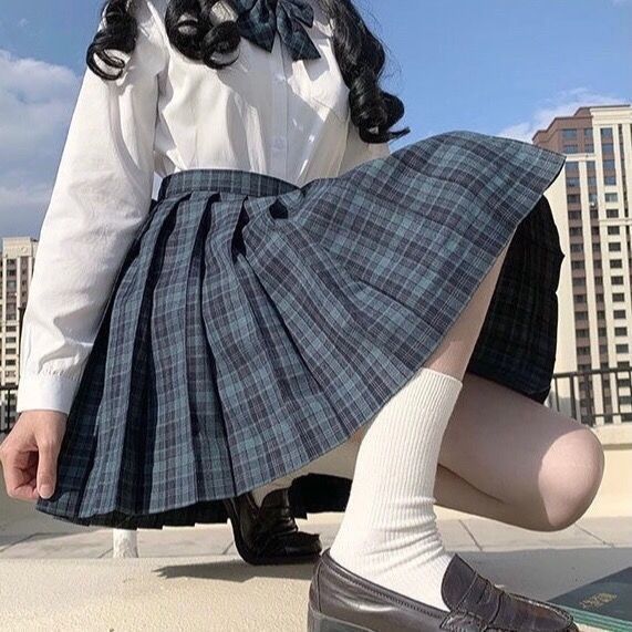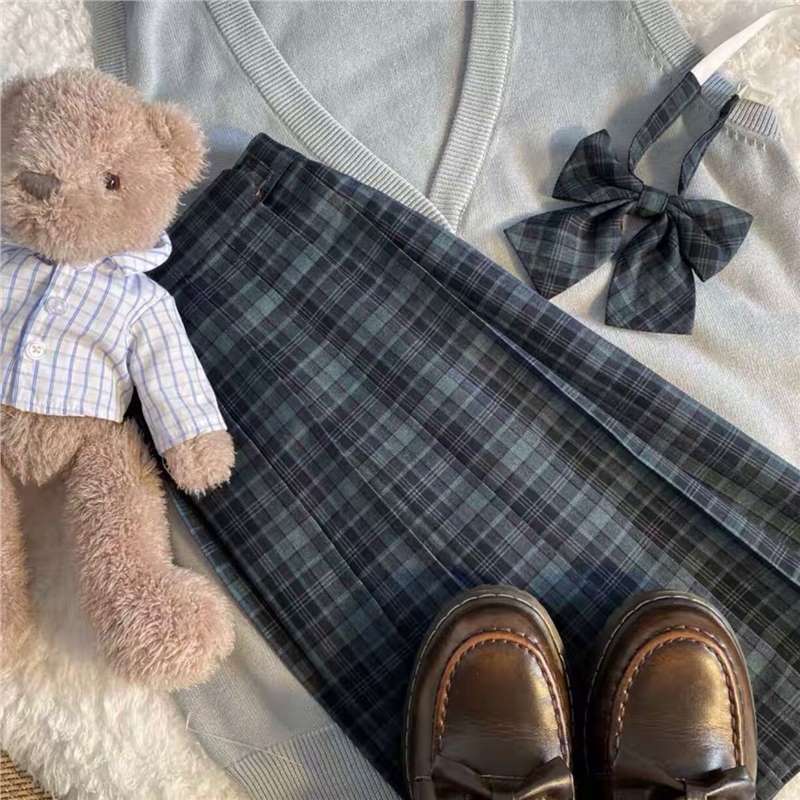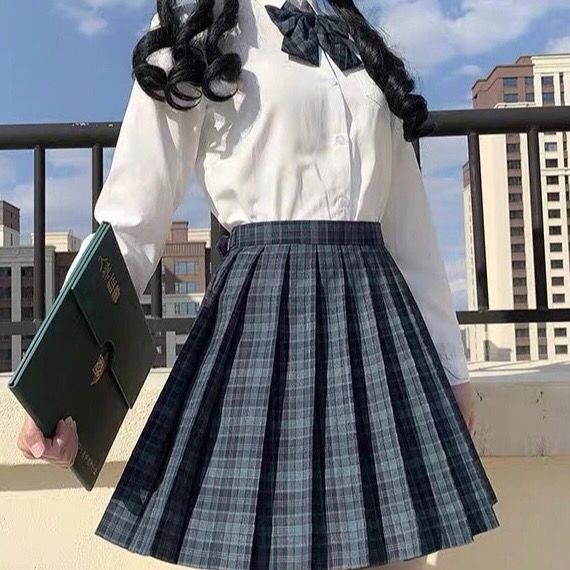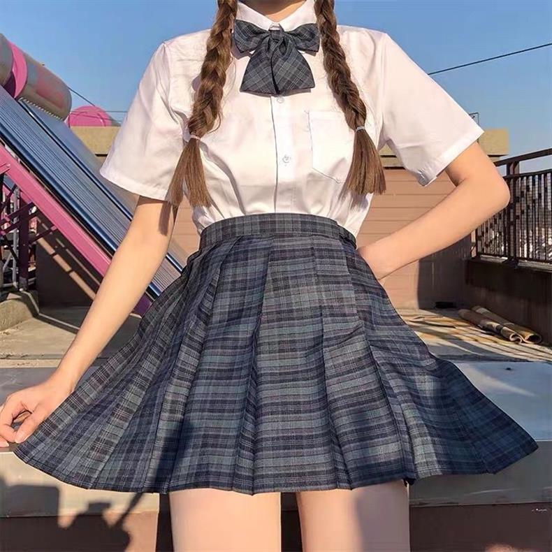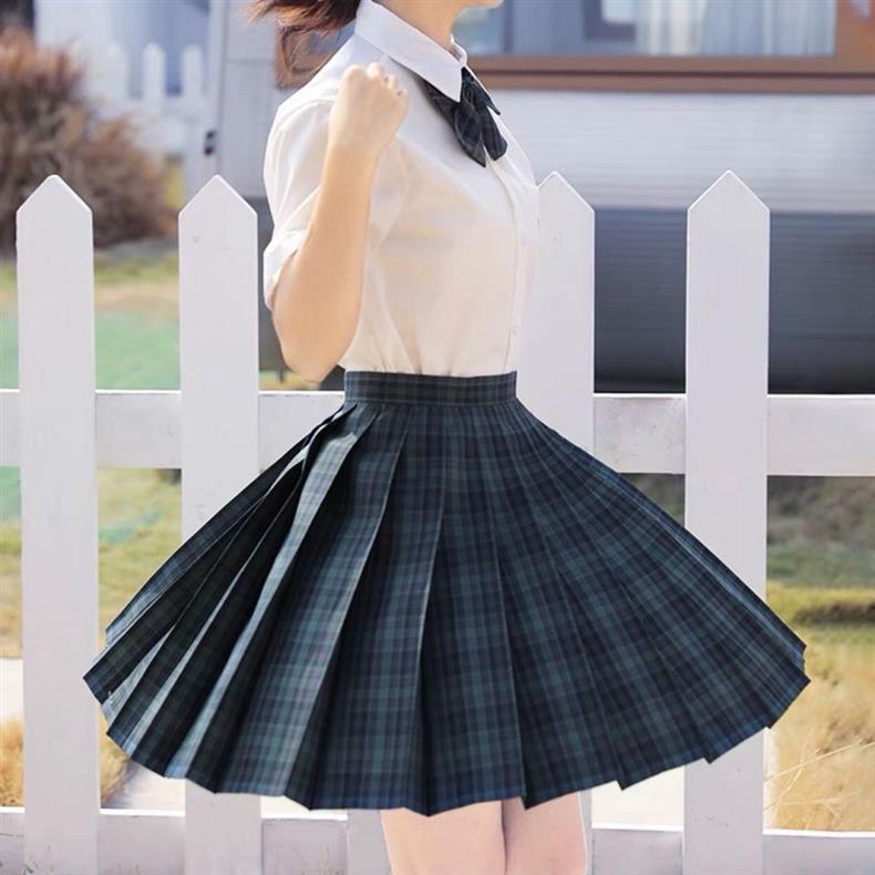 [해초] 일본 jk 체크 무늬 스커트 세트 부드러운 자매 대학 여름 슬림 주름 치마 재고 하이 허리 치마스토어 가기