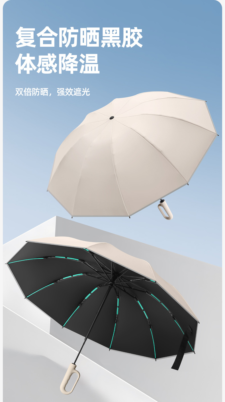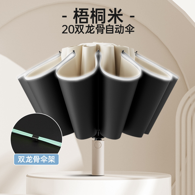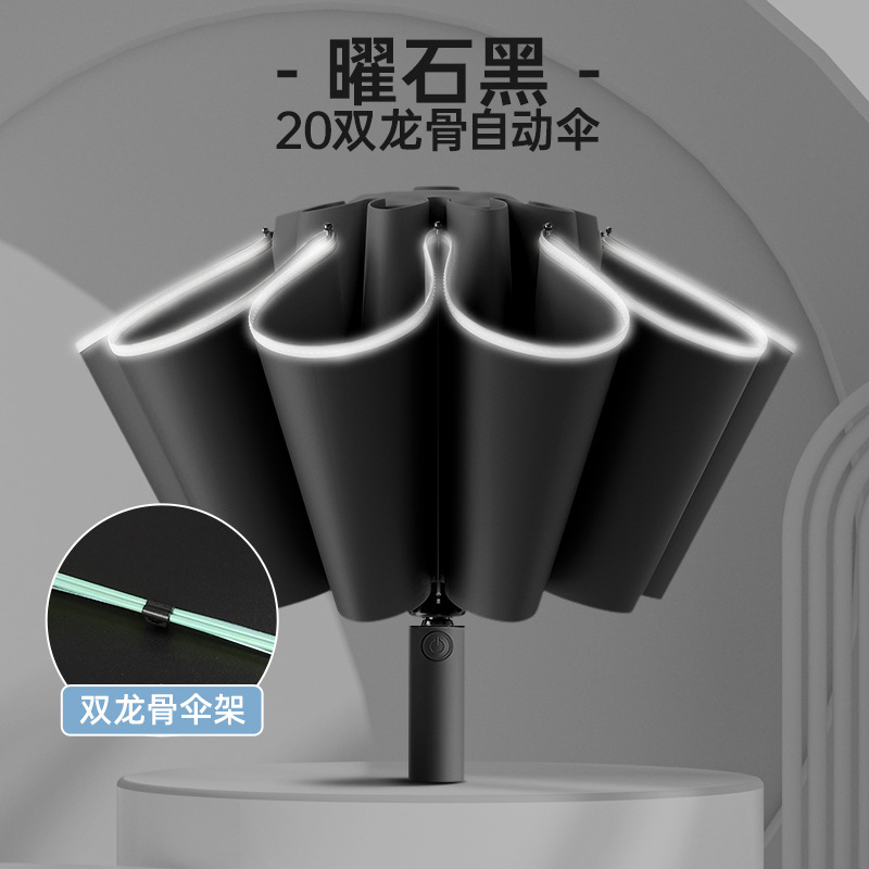 우산 자동 우산 접이식 고급형 양용 우산 햇빛 차단 및 방풍 블랙 글로스 리버스 우산 두꺼워지고 확대됨