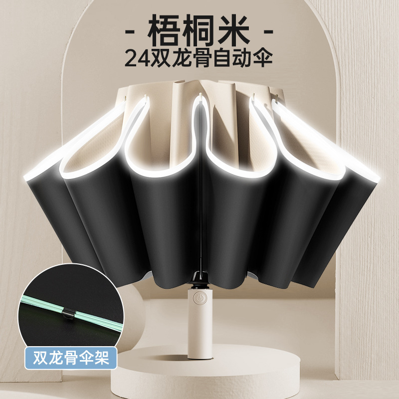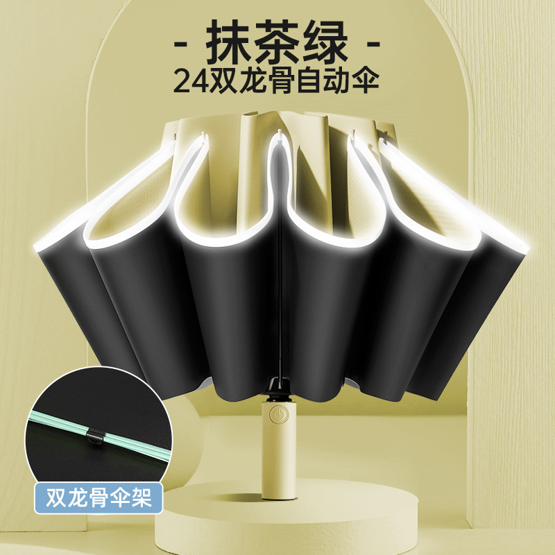 우산 자동 우산 접이식 고급형 양용 우산 햇빛 차단 및 방풍 블랙 글로스 리버스 우산 두꺼워지고 확대됨스토어 가기