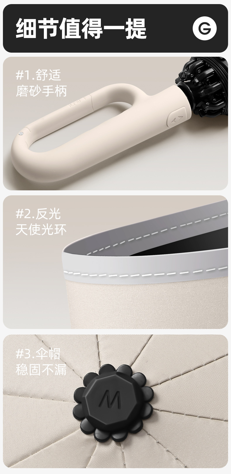 • 휴대용 고리 디자인의 3인용 대형 우산 126cm 초대형 우산 표면 베이지 색상