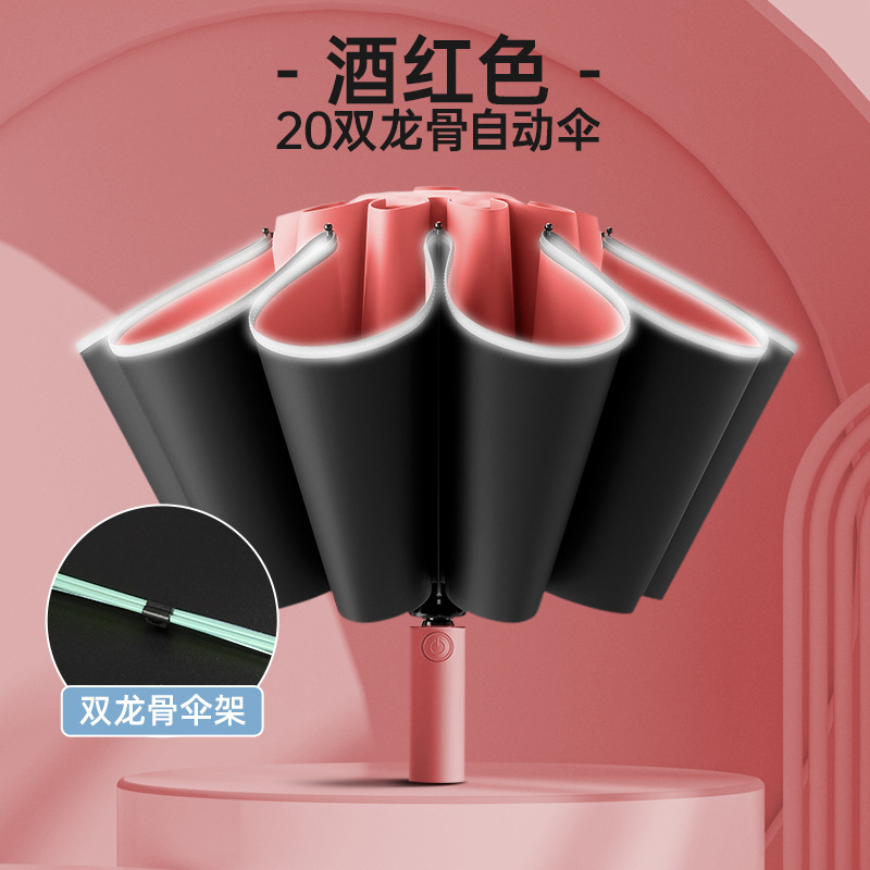 • 와인색 20본 강화 자외선 차단 블랙 코팅 항공 강화 유리 섬유 우산살 안전 반사 스트립