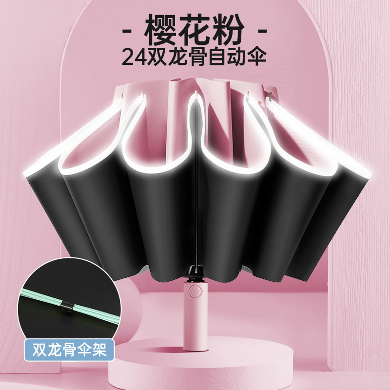 • 사쿠라 핑크 24 뼈 두꺼운 자외선 차단제 검정 접착제 항공 강화 유리 섬유 우산 갈비뼈 안전 반사 스트립