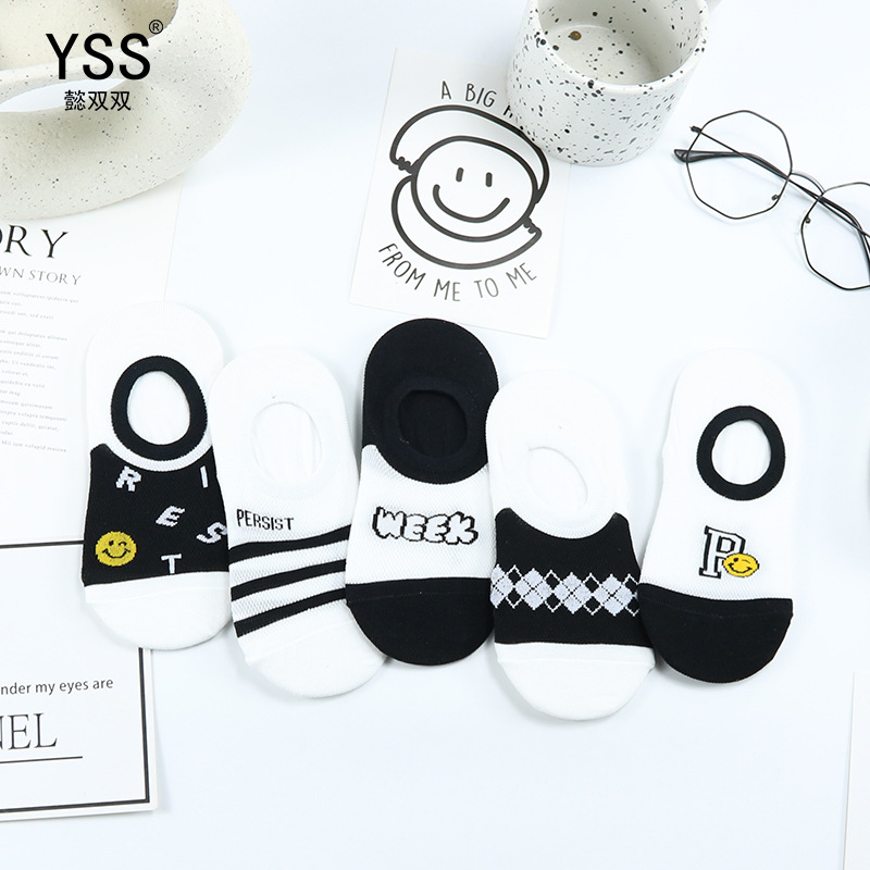 이 쌍 어린이 양말 여름 메쉬 통기성 만화 웃는 보이지 않는 양말 빗 코튼 실리콘 안티 슬립 보트 양말스토어 가기