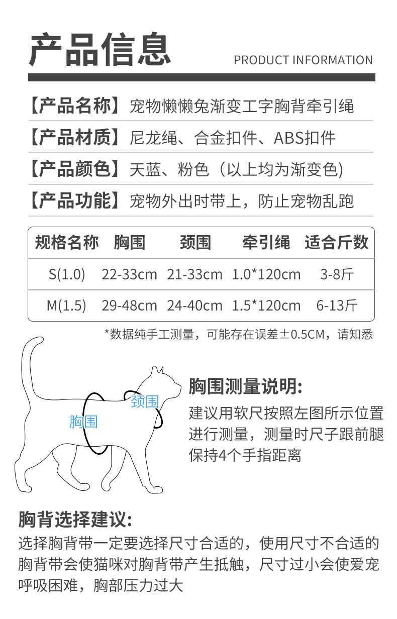 고양이 견인 로프 I 자형 안티 브레이크 프리 그라디언트 세트 개 체인 I 자형 등 견인 로프 조정 가능한 워킹 로프