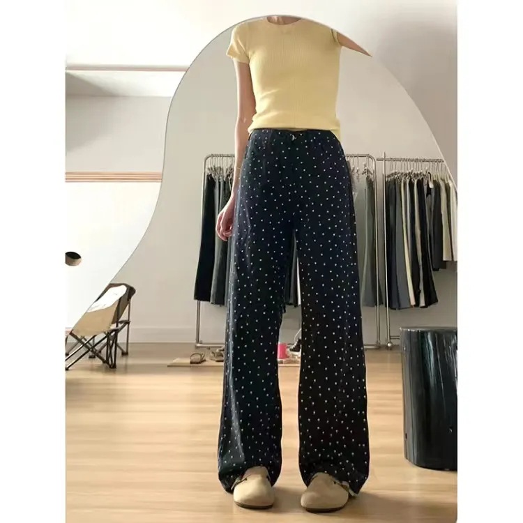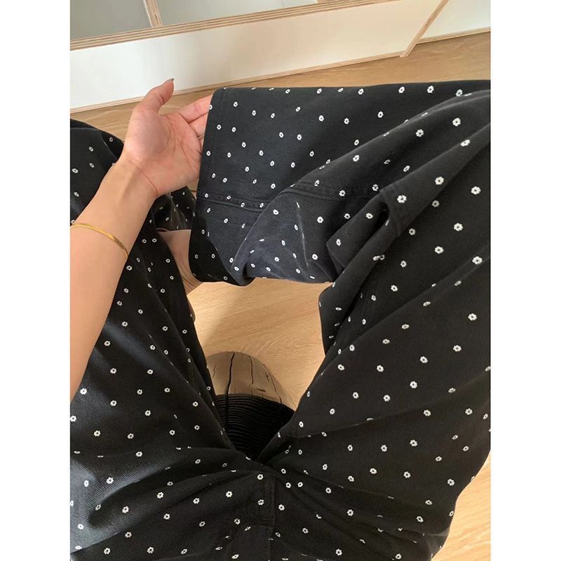 블랙 하이 허리 스트레이트 청바지 여성 2024 새로운 미국 하이 스트리트 레트로 폴로 도트 디자인 데님 바지스토어 가기