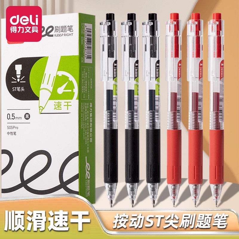 델리 S05 젤 펜 프레스 블랙 레드 브러시 펜 0.5 시험 특별 빠른 건조 ST 본사 학생 문구