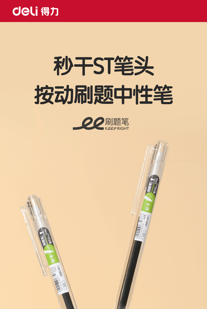 델리 S05 젤 펜 프레스 블랙 레드 브러시 펜 0.5 시험 특별 빠른 건조 ST 본사 학생 문구스토어 가기