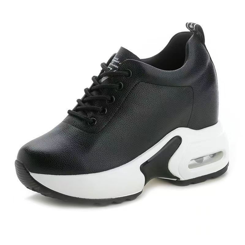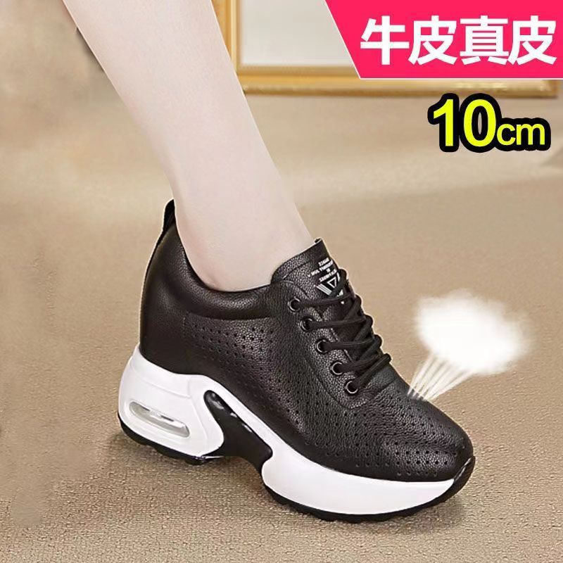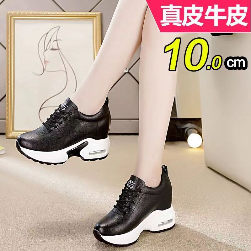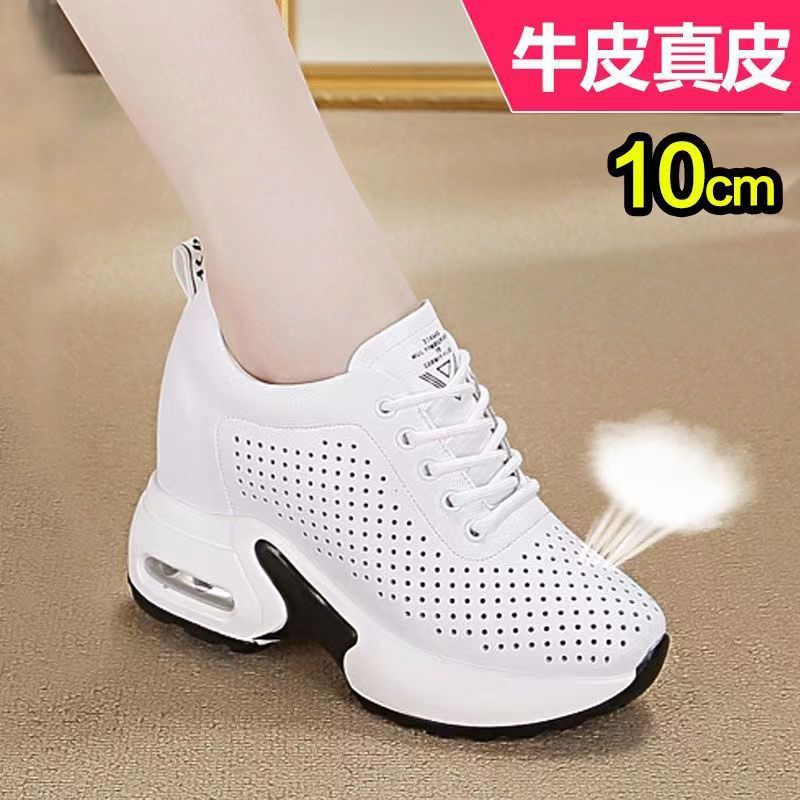 봄과 여름 새로운 정품 가죽 스포츠 캐주얼 신발 여성 통기성 내부 높이 흰색 신발 두꺼운 밑창 얇은 핫 스타일 싱글 레이어 신발스토어 가기