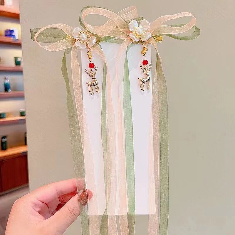 한푸 머리 고대 세트 요정 사슴 Qiyuan 어린이 긴 리본 머리핀 중국 스타일 걷는 술 머리핀 골동품 머리핀스토어 가기