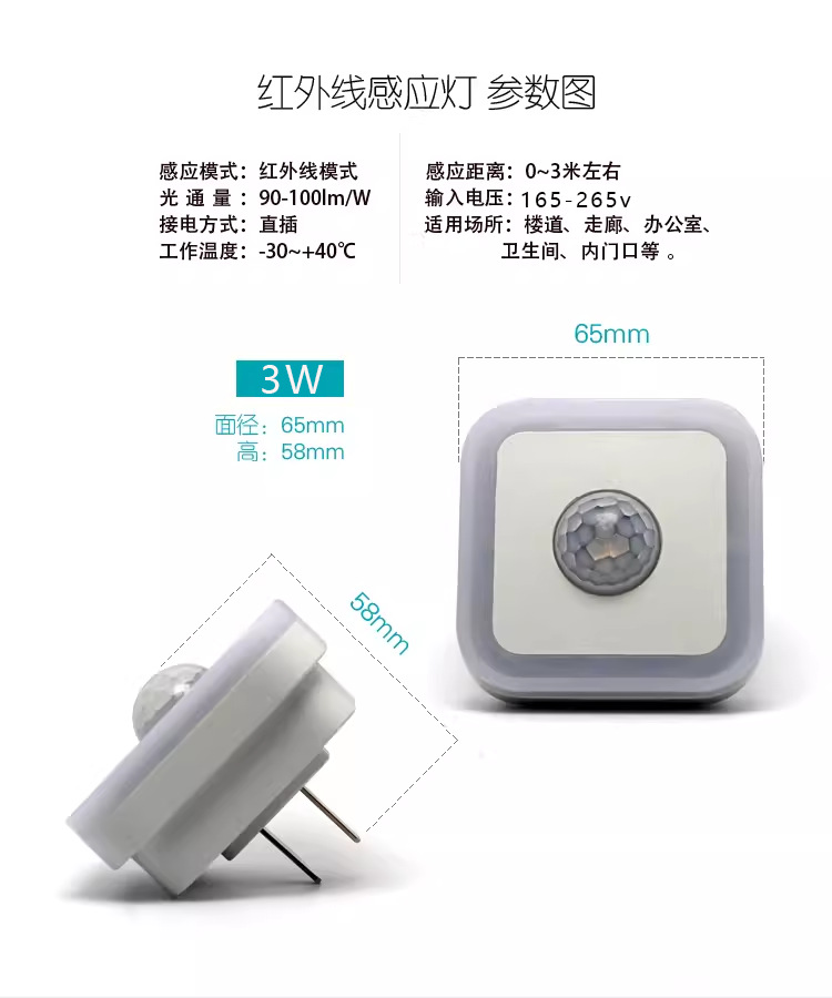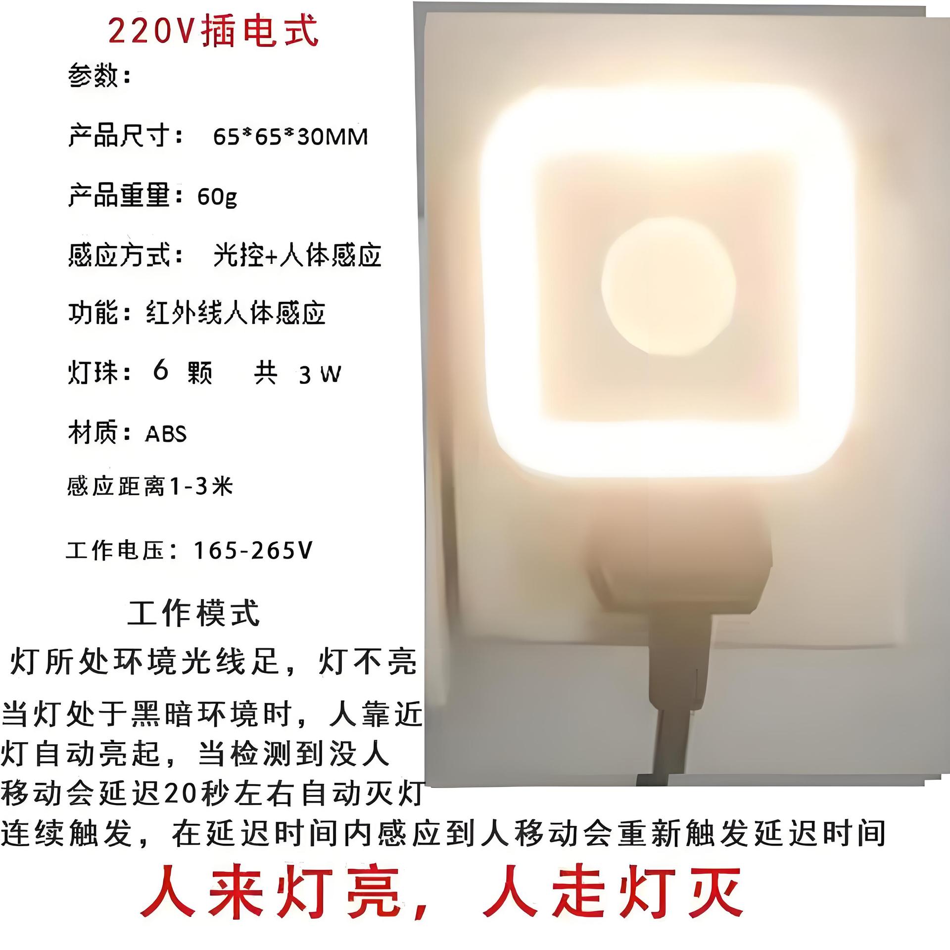 플러그인 인체 적외선 유도 야간 조명 주방 욕실 계단 통로 축제 스마트 먹이 밤 led 빛