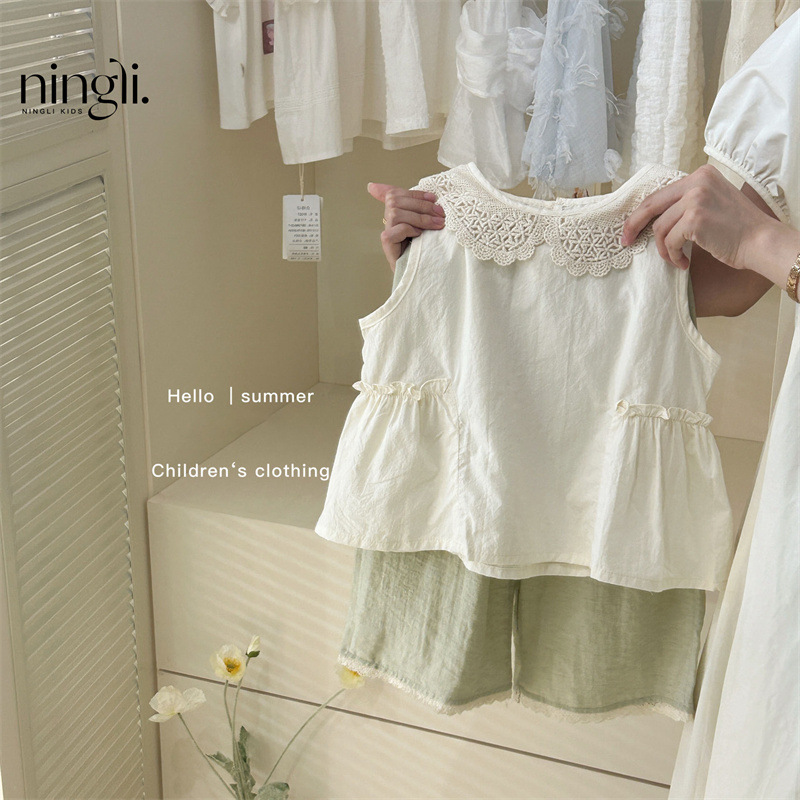 라임 소녀의 여름 세트 새로운 어린이 세련된 조끼 바지 투피스 세트 소녀의 캐주얼 여름 옷스토어 가기