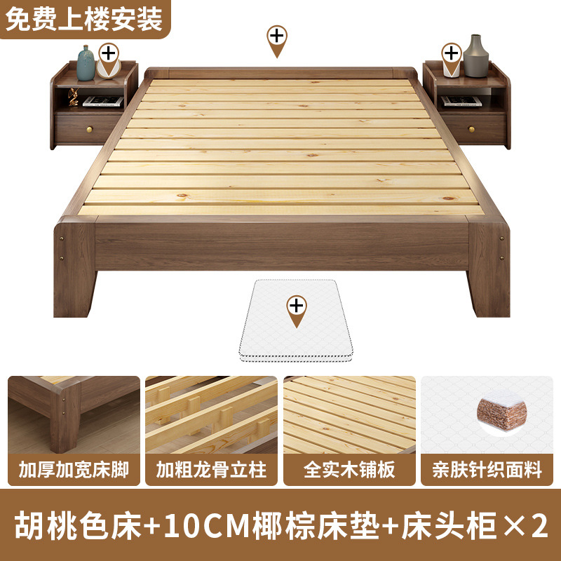 • §★✪♪§호두색 침대 + 5CM 매트 + 침대 수납장 * 2 | 가정용 설치 포함§★✪♪§