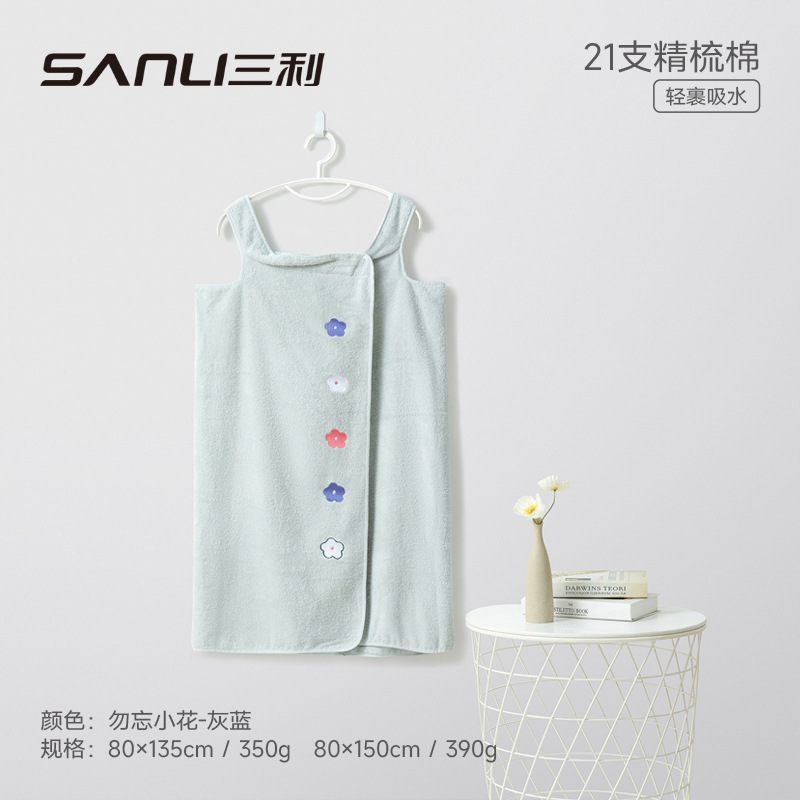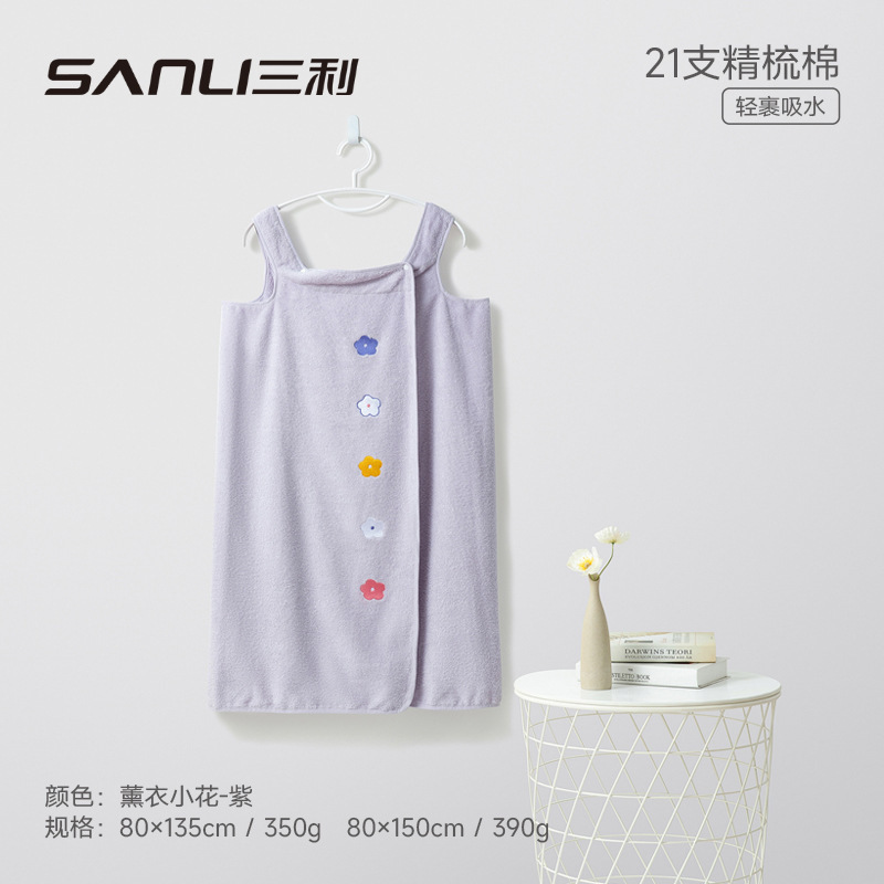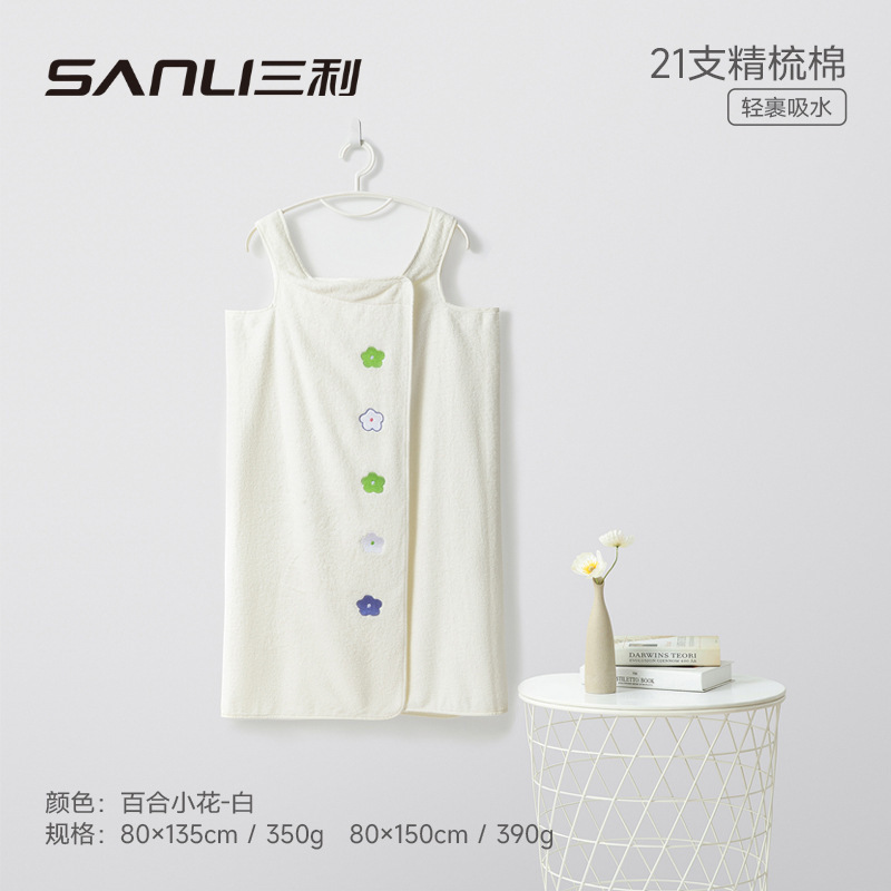 Sanli 수건 아마존 국경 목욕 스커트 순수 코튼 서스펜더 자수 코튼 웨어러블 목욕 타올 튜브 탑 성인 목욕 타올스토어 가기