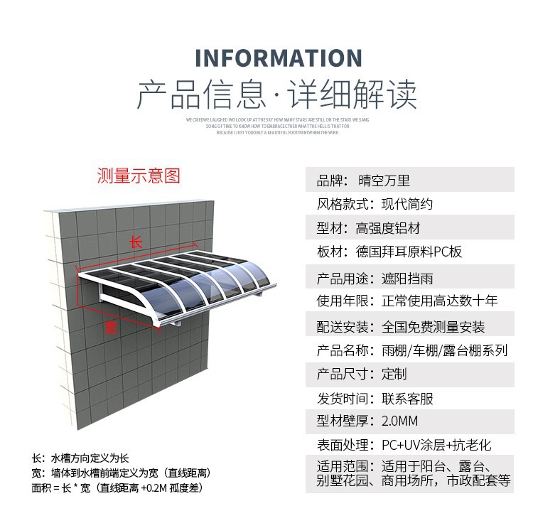 S * 알루미늄 합금 캐노피 야외 자동차 창고 빌라 홈 발코니 도어 헤드 코트야드 방비 창 비 그늘스토어 가기