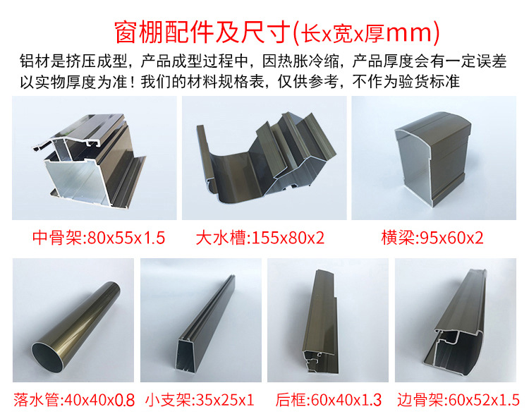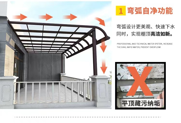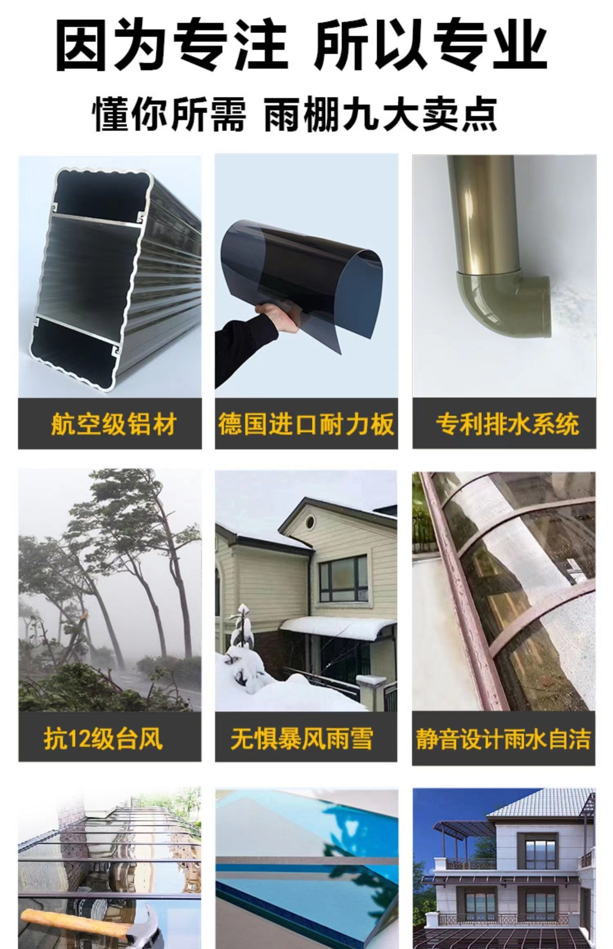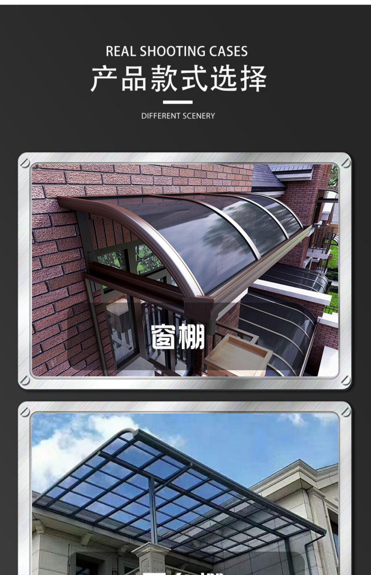S * 알루미늄 합금 캐노피 야외 자동차 창고 빌라 홈 발코니 도어 헤드 코트야드 방비 창 비 그늘