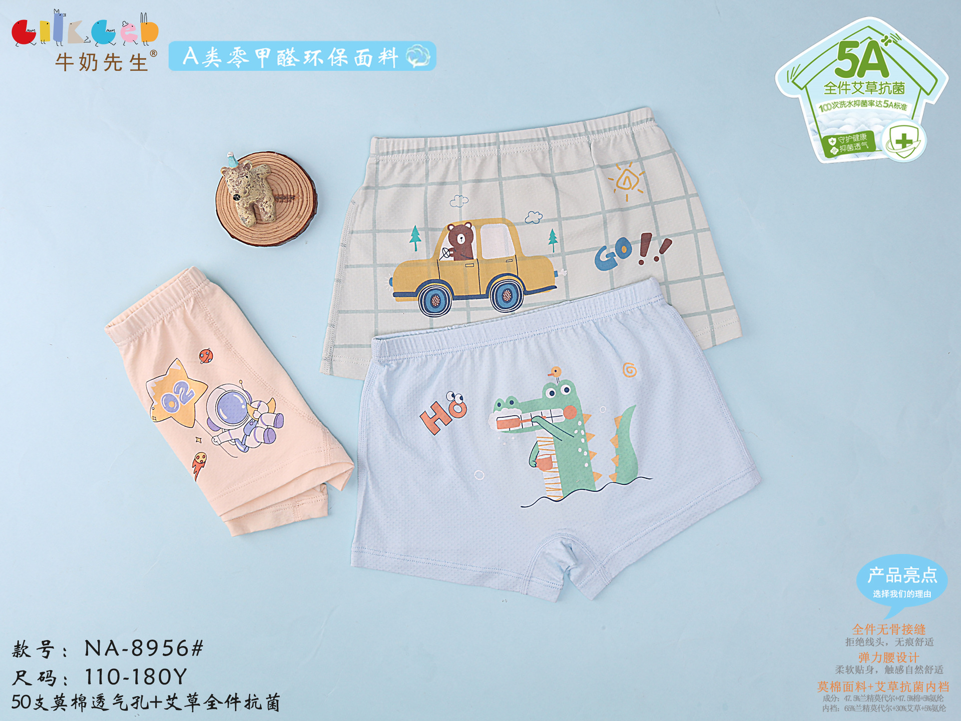 Mr. Milk Boys 어린이 속옷 복서 속옷 공룡 소년 자동차 복서 속옷 Lanjing Modal