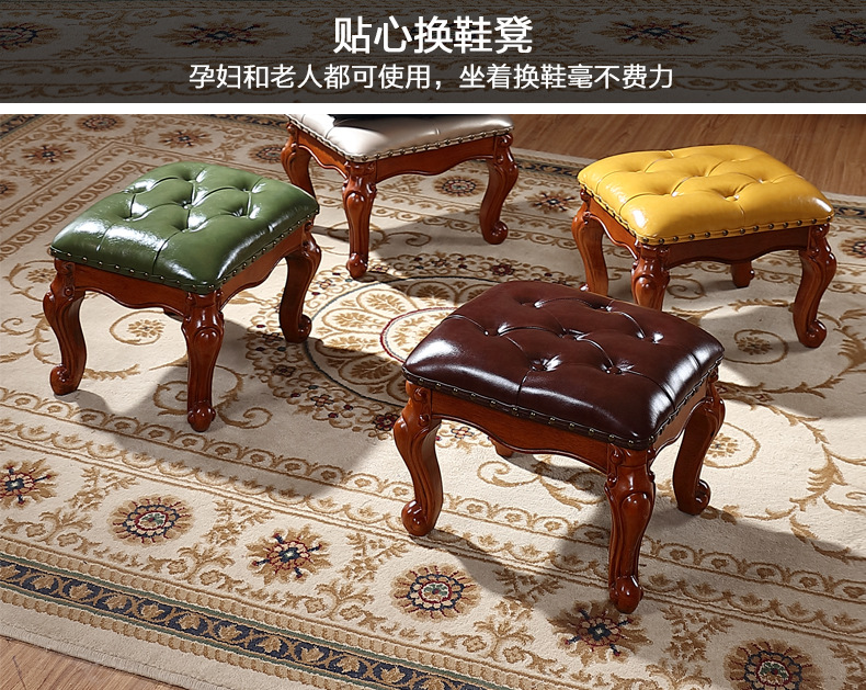L * 미국의 작은 의자 낮은 의자 거실 소파 티 테이블 부두 가죽 사각 의자 단단한 나무 신발 의자 유럽 작은 벤치 홈