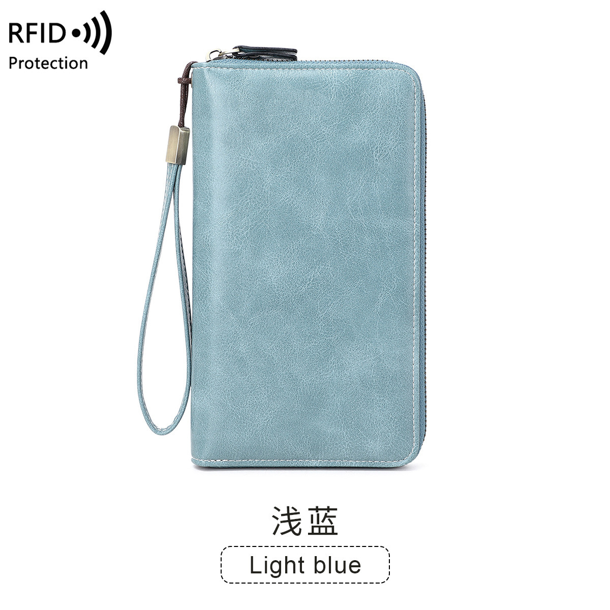 국경 간 새로운 RFID 도난 방지 브러시 여성용 지갑 대용량 클러치 백 유럽과 미국의 복고풍 멀티 카드 롱 지갑스토어 가기