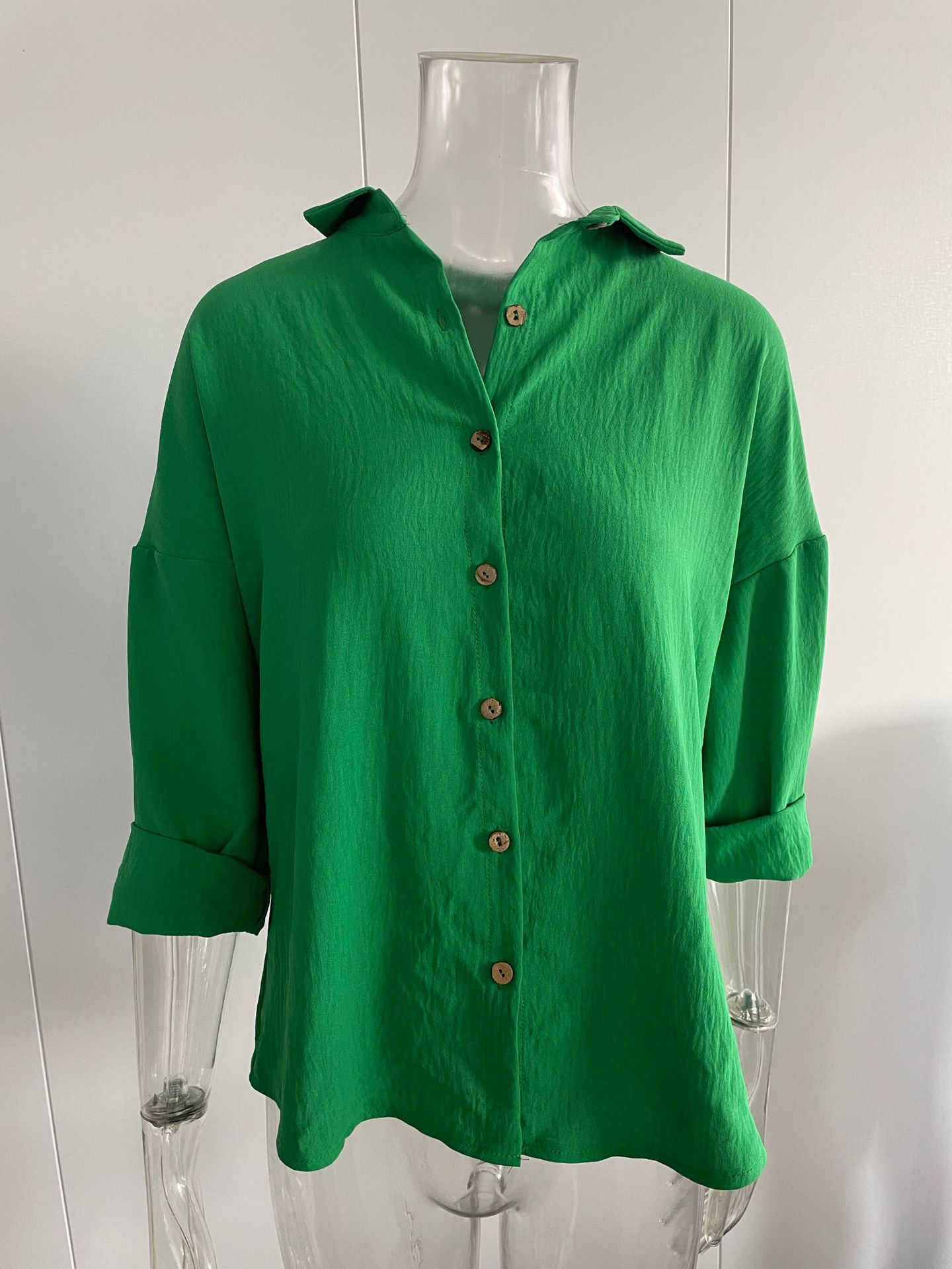 2024 새로운 단일 가슴 주름 옷깃 셔츠 독립 스테이션 폭발 여성 솔리드 컬러 유럽과 미국 슬리브 탑스토어 가기
