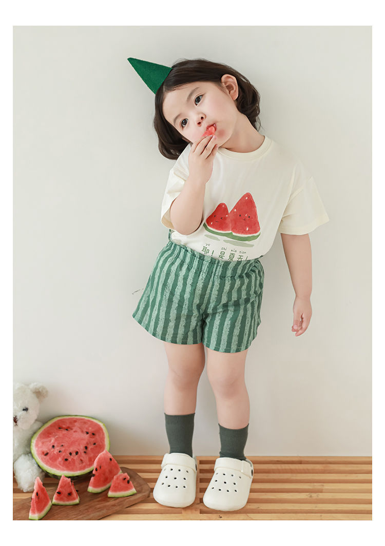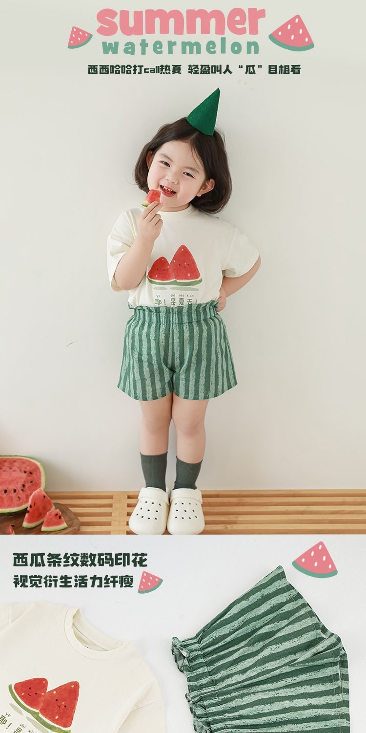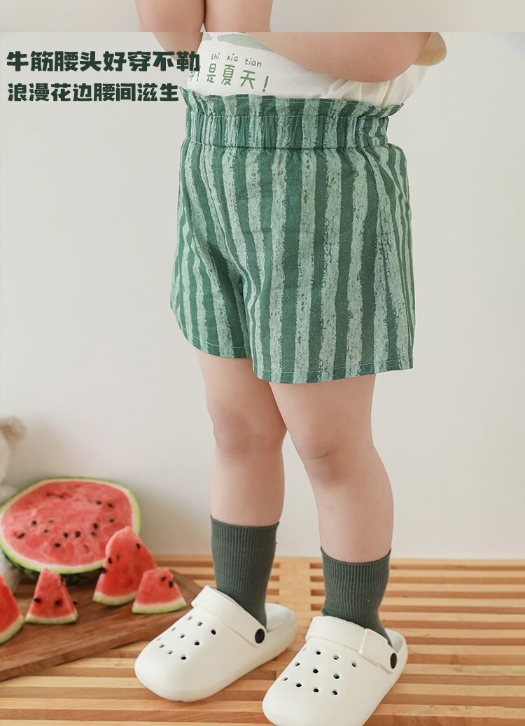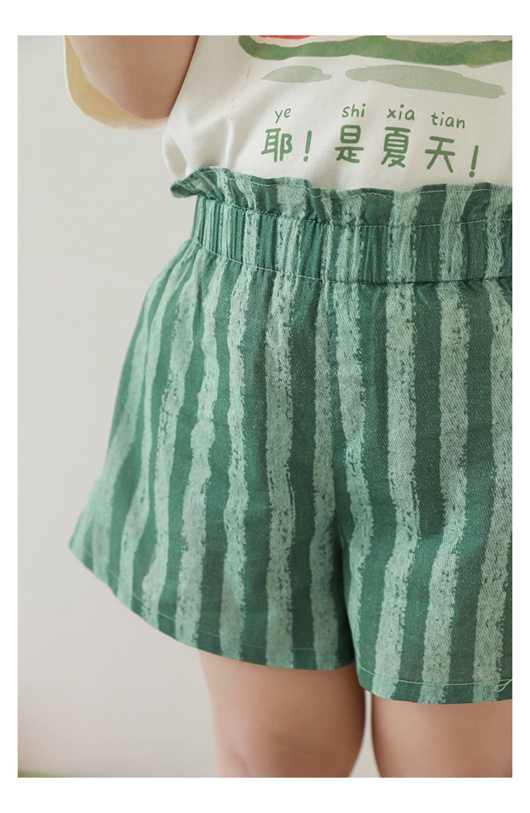 소녀의 로맨틱 레이스 수박 줄무늬 반바지 2025 여름 서양식 귀여운 부드러운 캐주얼 바지스토어 가기