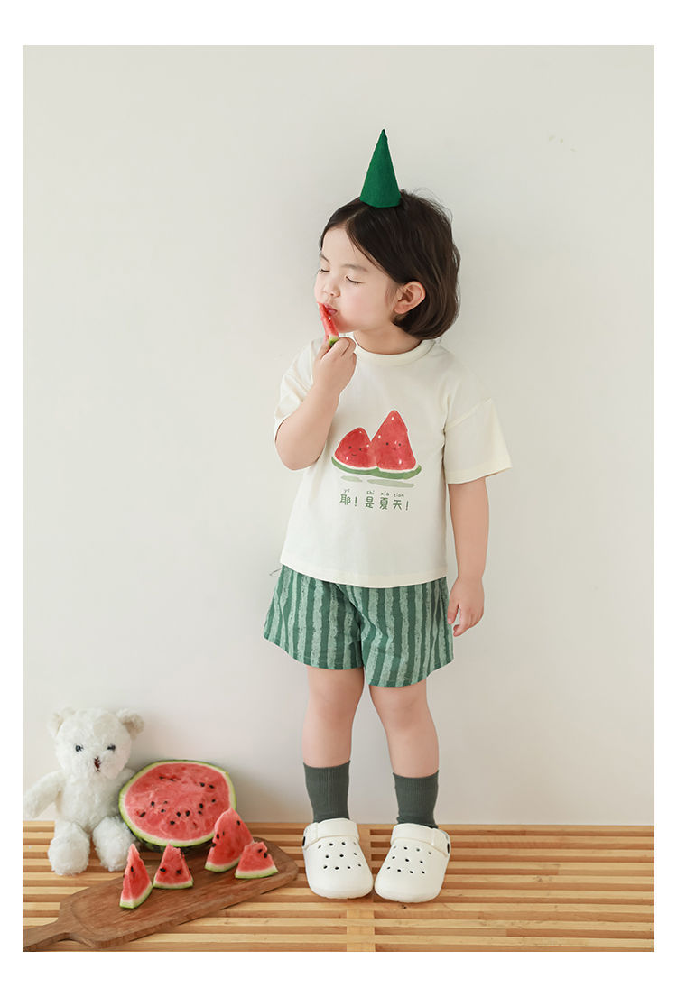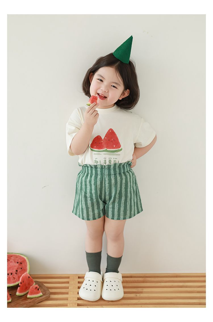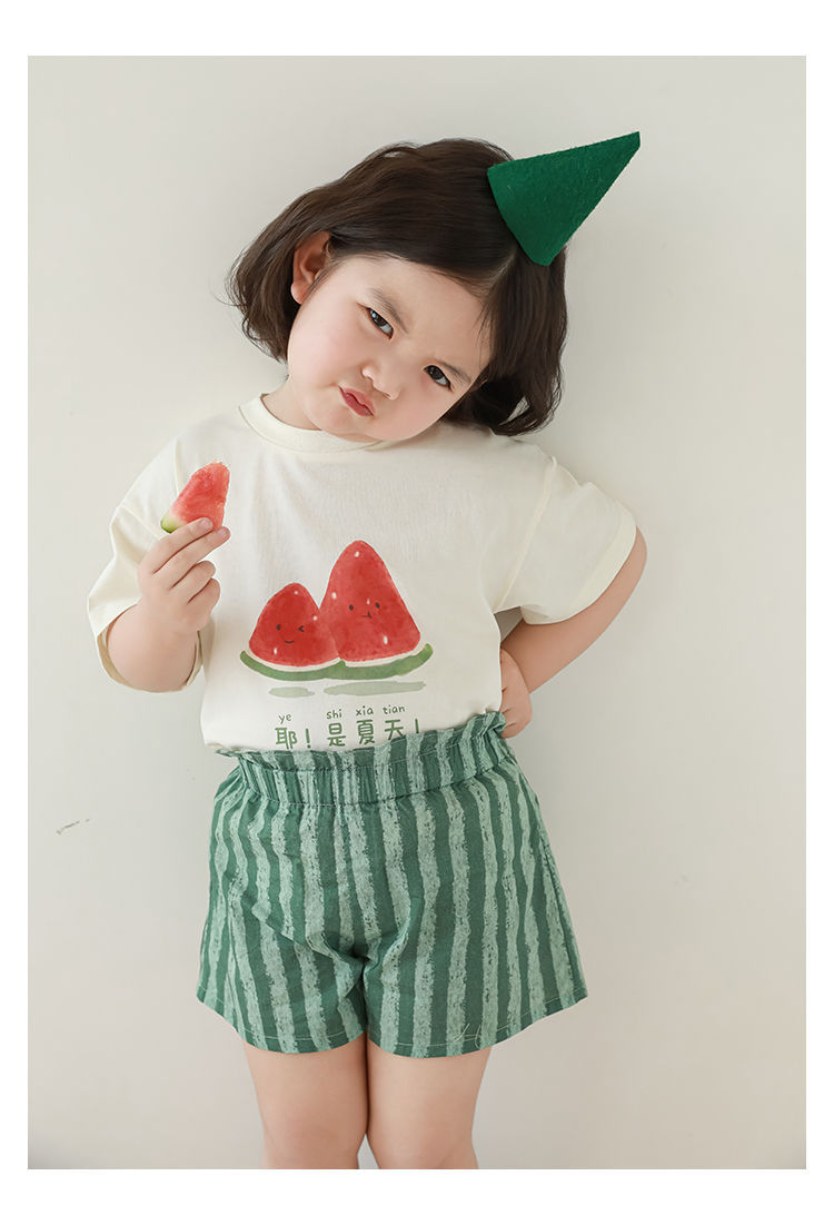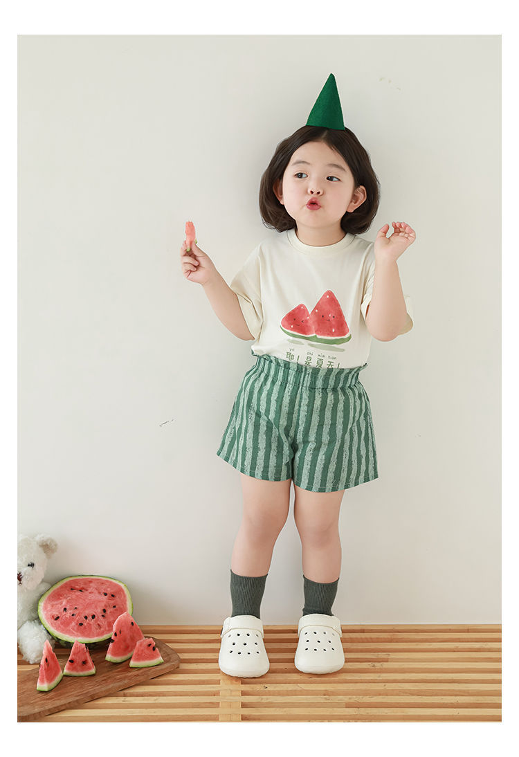 소녀의 로맨틱 레이스 수박 줄무늬 반바지 2025 여름 서양식 귀여운 부드러운 캐주얼 바지스토어 가기