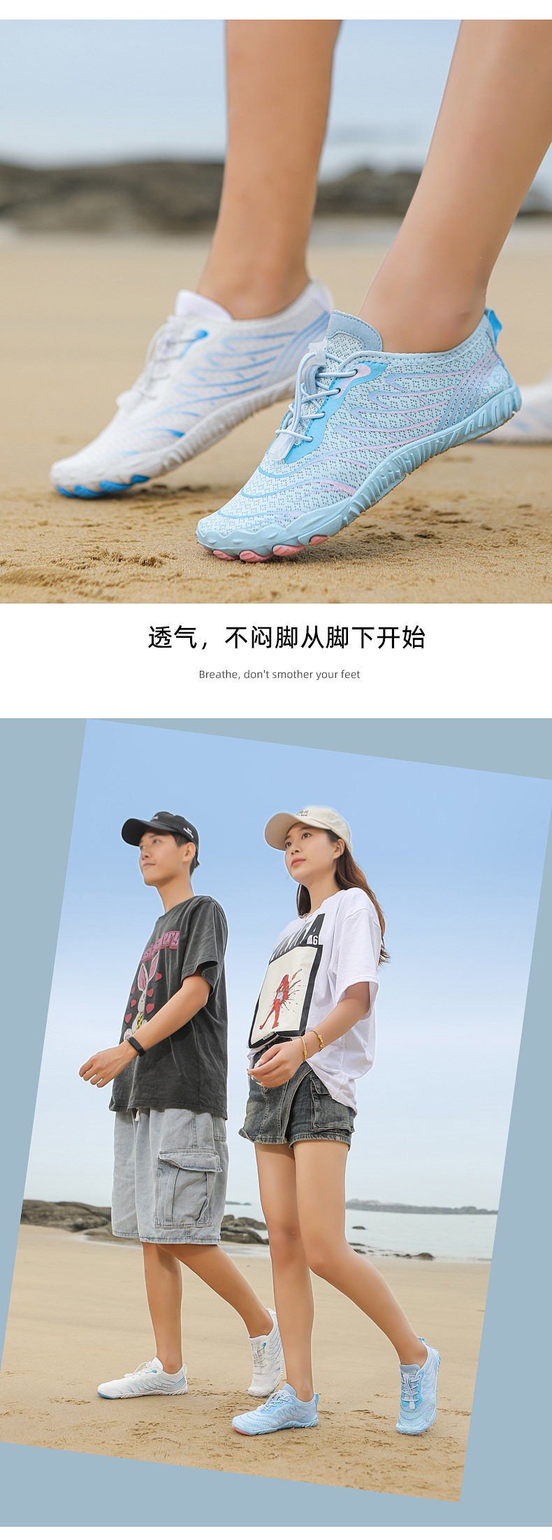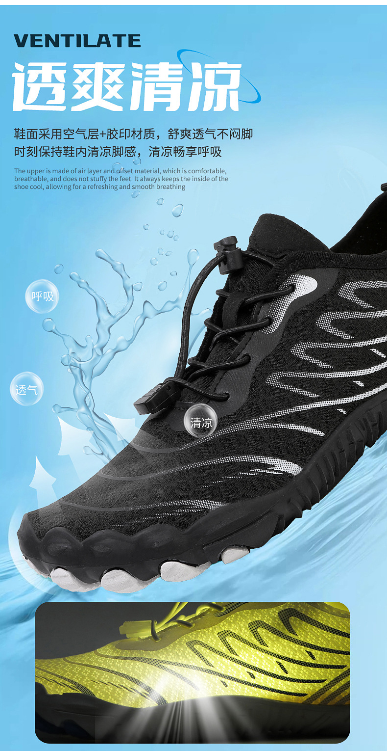 국경 간 야외 남성 및 여성 해변 피부 친화적 인 수영 다섯 손가락 신발 미끄럼 방지 속건성 통기성 낚시 및 와타리 신발