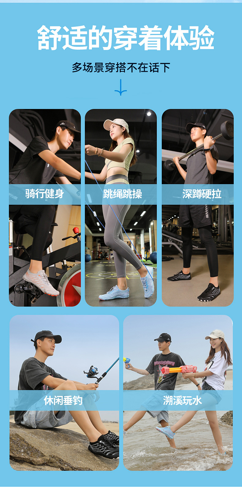 국경 간 야외 남성 및 여성 해변 피부 친화적 인 수영 다섯 손가락 신발 미끄럼 방지 속건성 통기성 낚시 및 와타리 신발스토어 가기