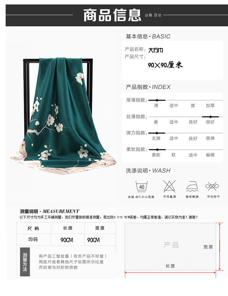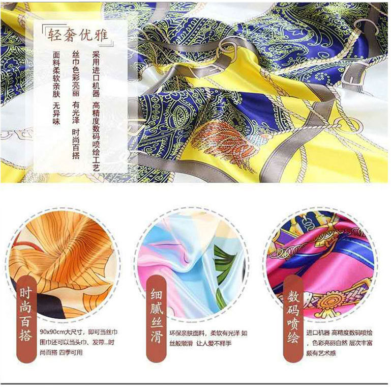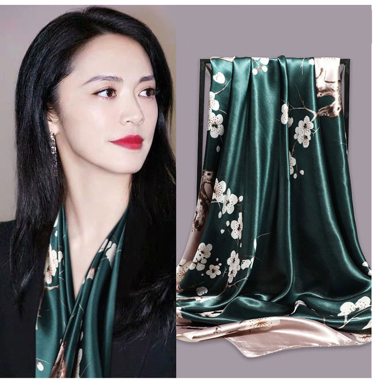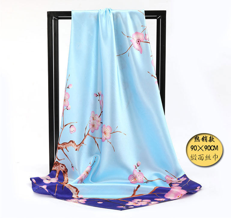 매화 컬러 스퀘어 스카프 터번 복고풍 우아한 실키 패션 우아한 스카프 공장 직접 도매스토어 가기