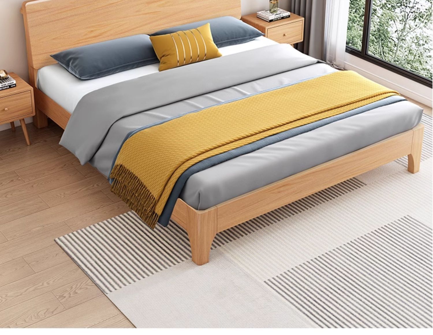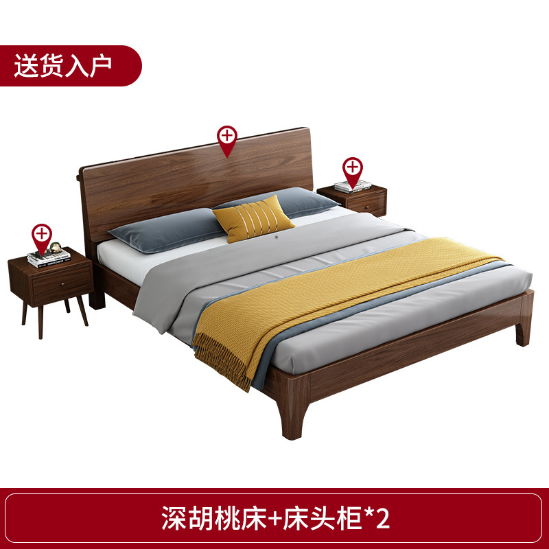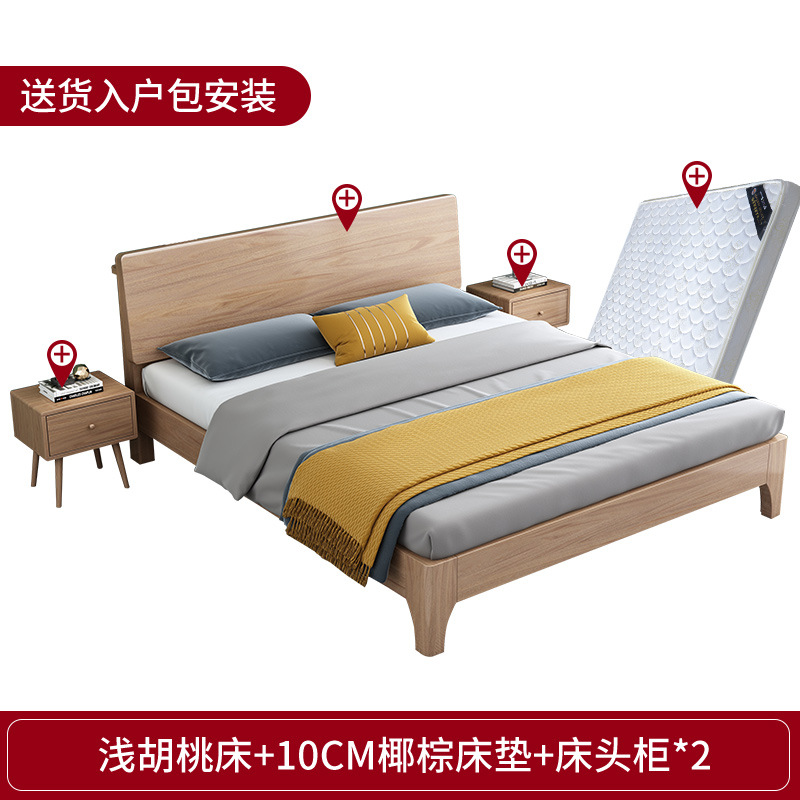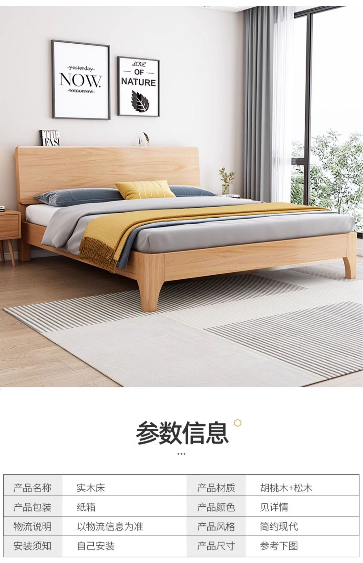 모던 심플 가정용 1.8m 더블 침대, 침실용 1.5m 싱글 침대, 공장 직판 원목 침대 프레임스토어 가기