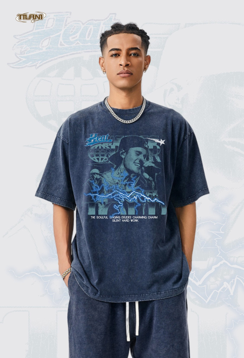 TILANI 남자 여름 거리 힙합 랩 짧은 소매 탑 미국 복고풍 패션 브랜드 티셔츠 Batik Loose 티셔츠스토어 가기