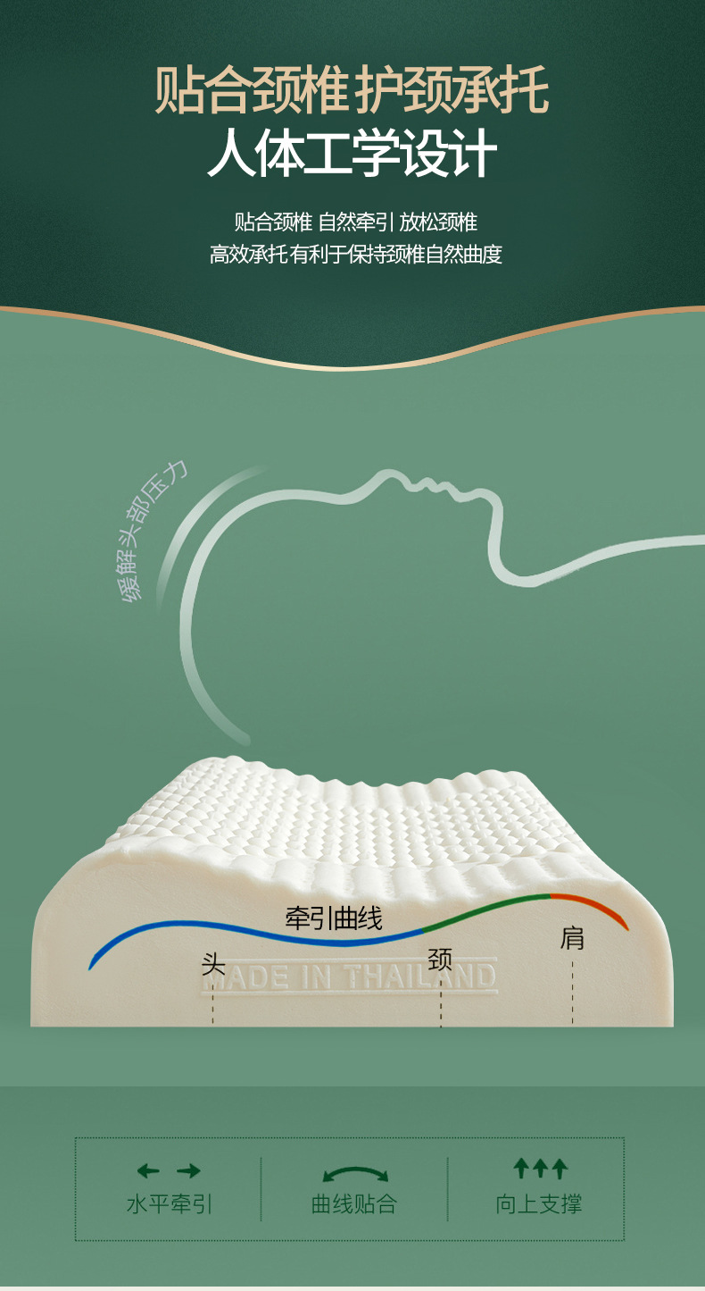 태국산 천연 라텍스 베개 성인용 경추 마사지 베개 코어 공장 직판 생방송 선물 수면용스토어 가기