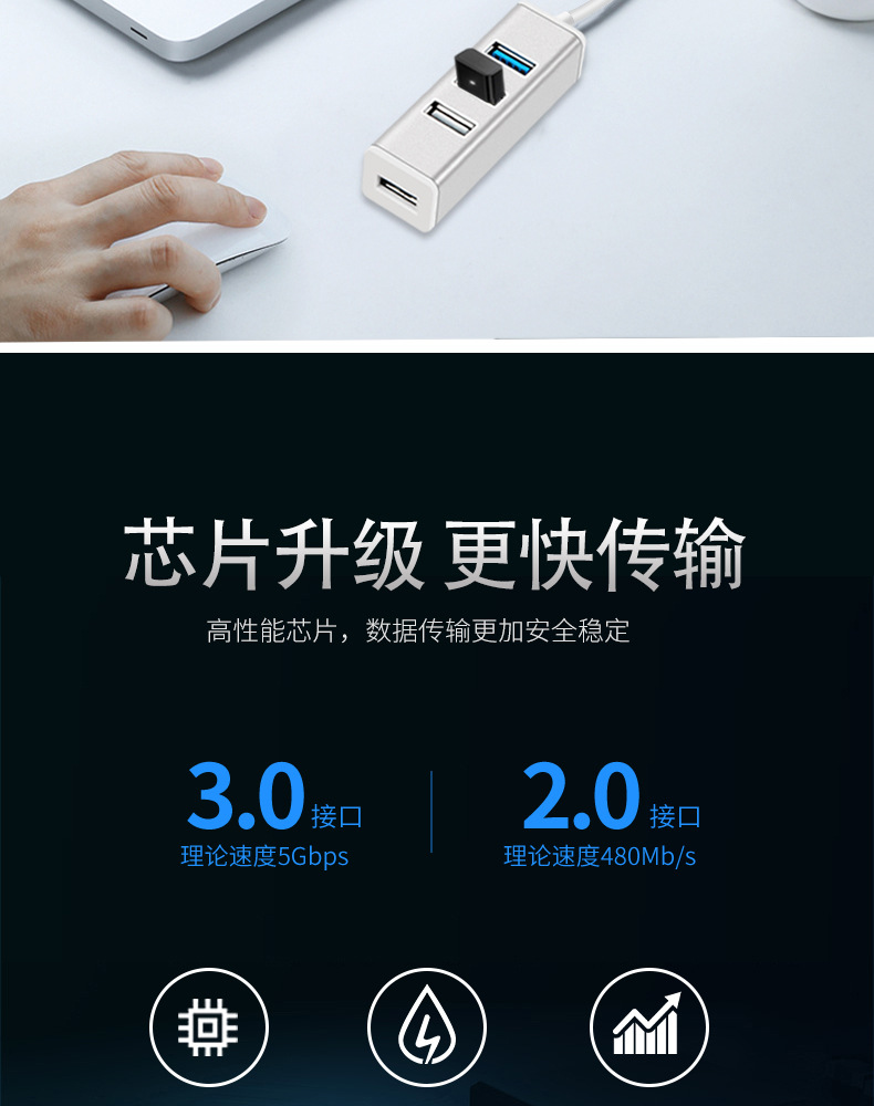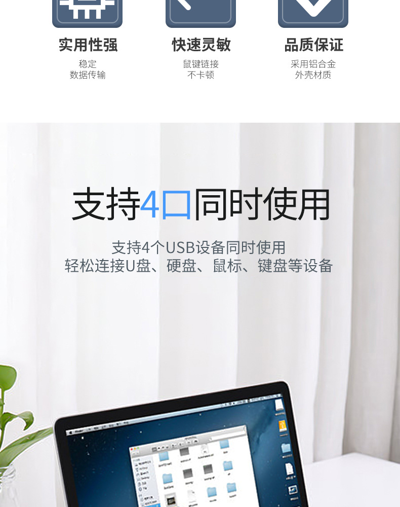 새로운 알루미늄 합금 작은 4 개의 USB 허브 컴퓨터 익스텐더 USB3.0 2.0 허브 크리에이티브 스플리터