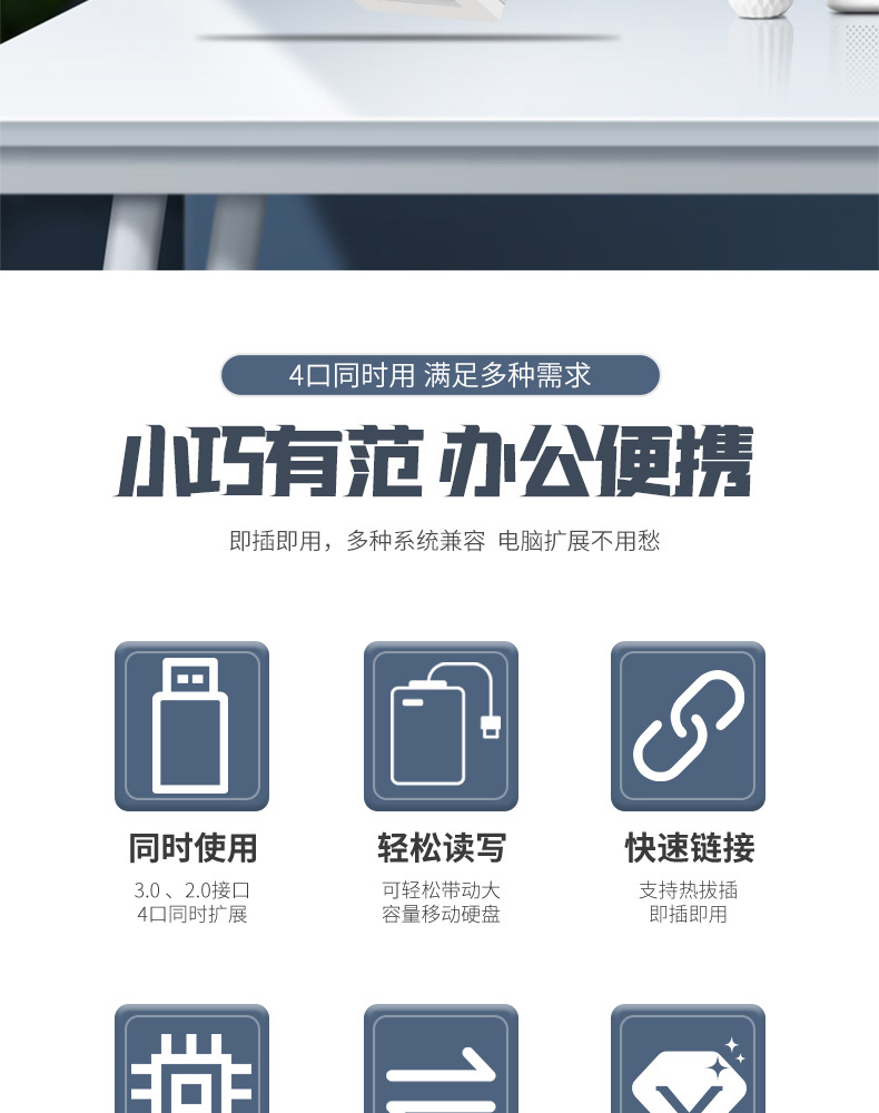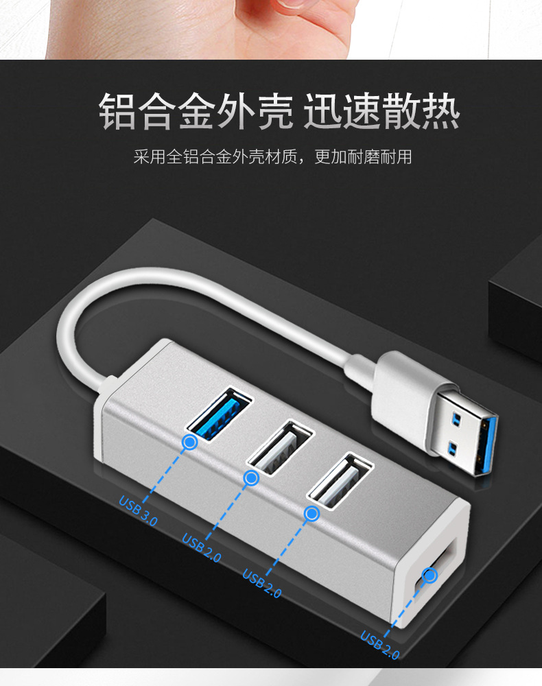 새로운 알루미늄 합금 작은 4 개의 USB 허브 컴퓨터 익스텐더 USB3.0 2.0 허브 크리에이티브 스플리터스토어 가기