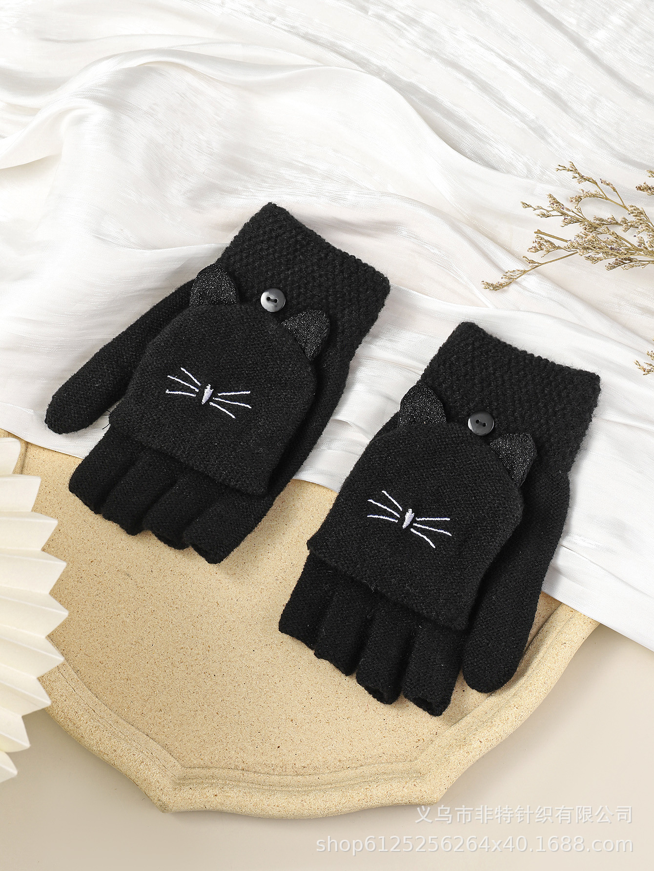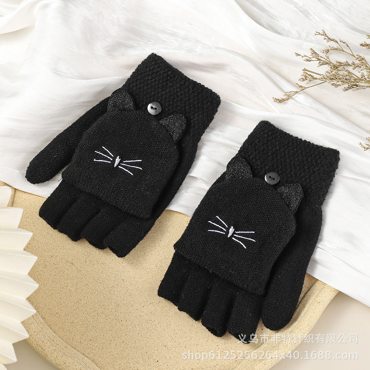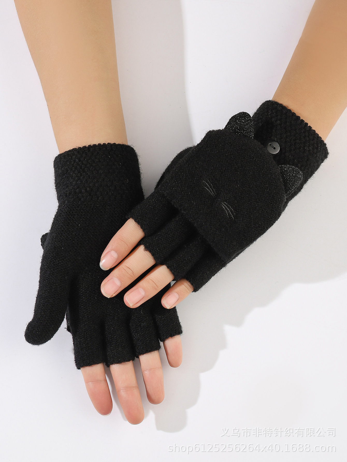 FEAT 반손가락 플러스 고양이 자카드 플립업 장갑 다섯 손가락 노출 장갑 유럽 대외 무역 장갑 맞춤형스토어 가기