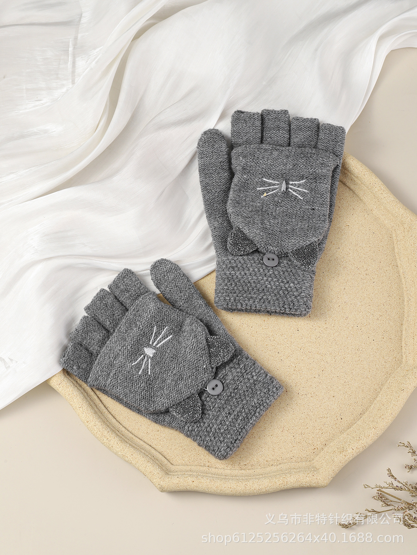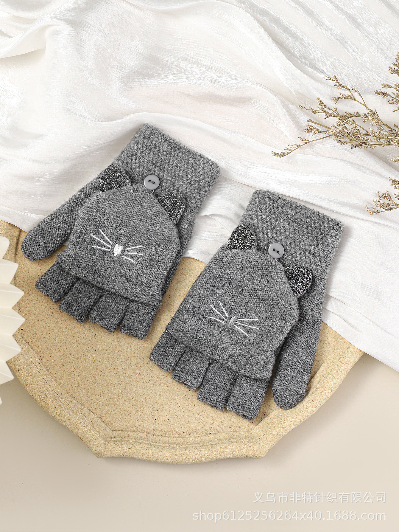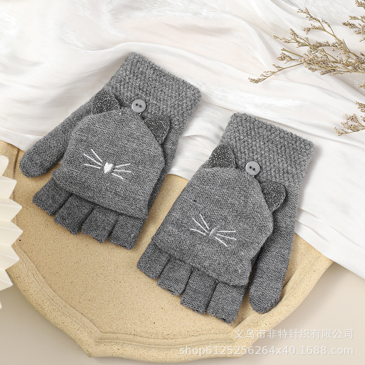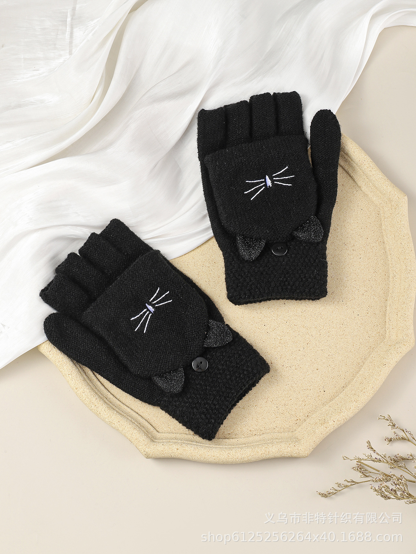 FEAT 반손가락 플러스 고양이 자카드 플립업 장갑 다섯 손가락 노출 장갑 유럽 대외 무역 장갑 맞춤형스토어 가기