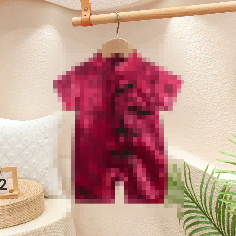 보름달 아기 옷 여름 반팔 1 백일 한 살짜리 소년 옷 복고풍 중국식 한푸 점프 수트