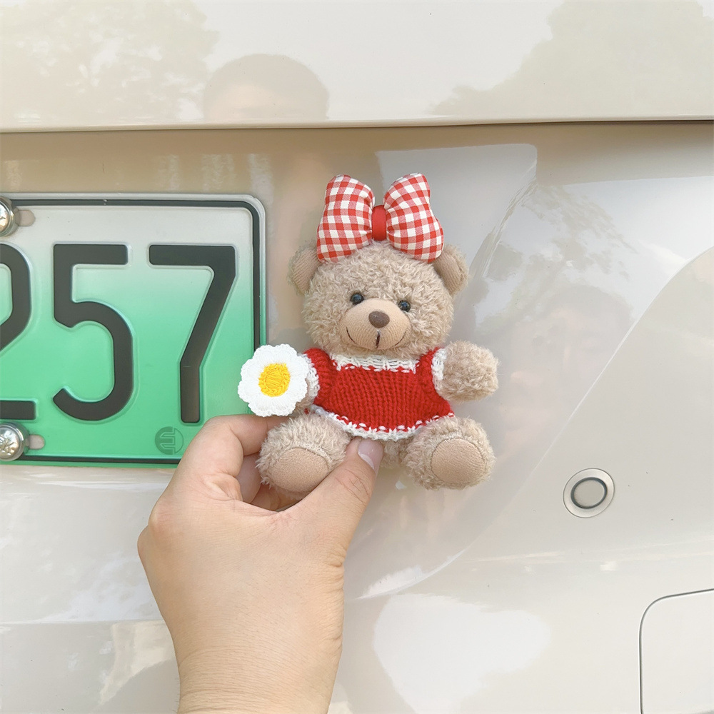 • 꽃이 달린 검은색 격자 무늬 활과 물떼새 격자 무늬 곰 - 자동차 테일 펜던트